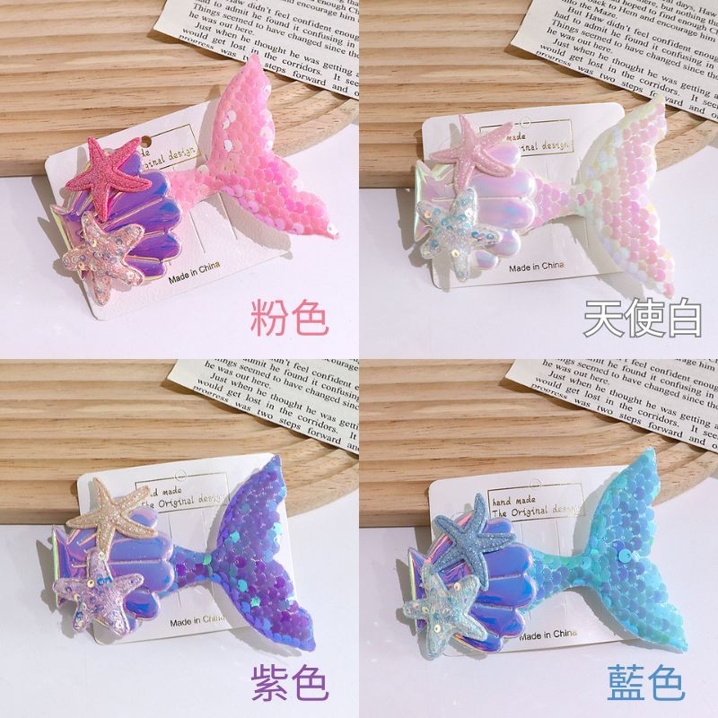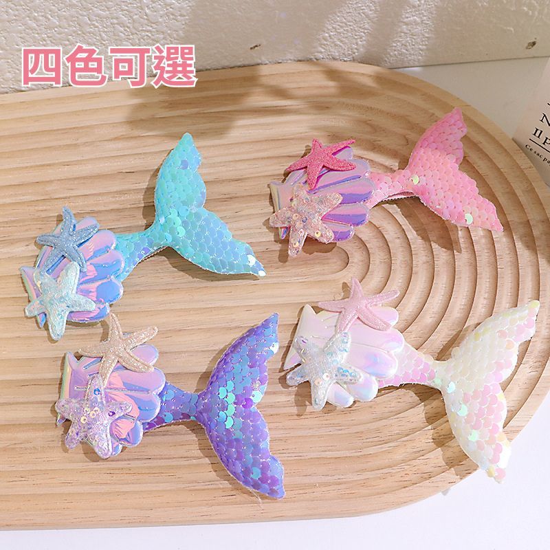 AMISS 美人鱼髮夾 兒童亮片髮夾 海星貝殼鴨嘴夾 舞台造型髮飾 立體髮夾 可愛髮夾粉色/1個|藍色/1個|紫色/1個|天使白/1個Hair AccessoriesAmiss全家人的襪子