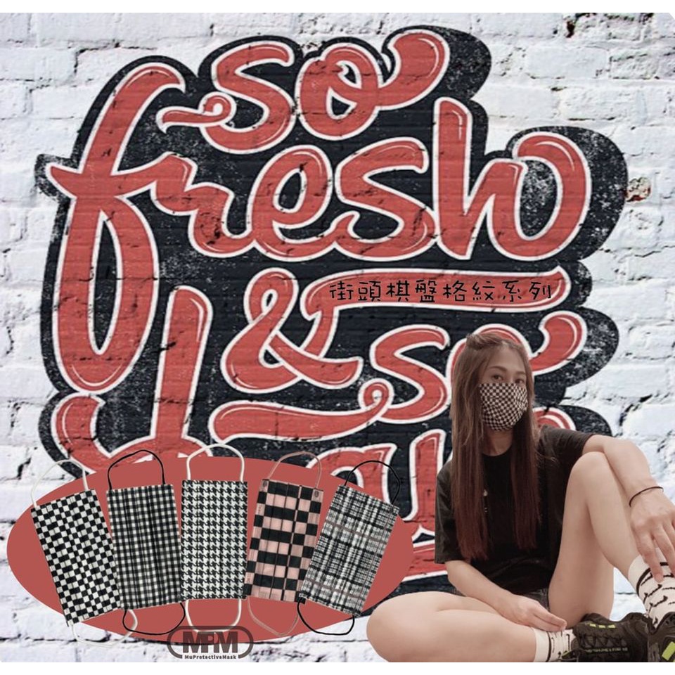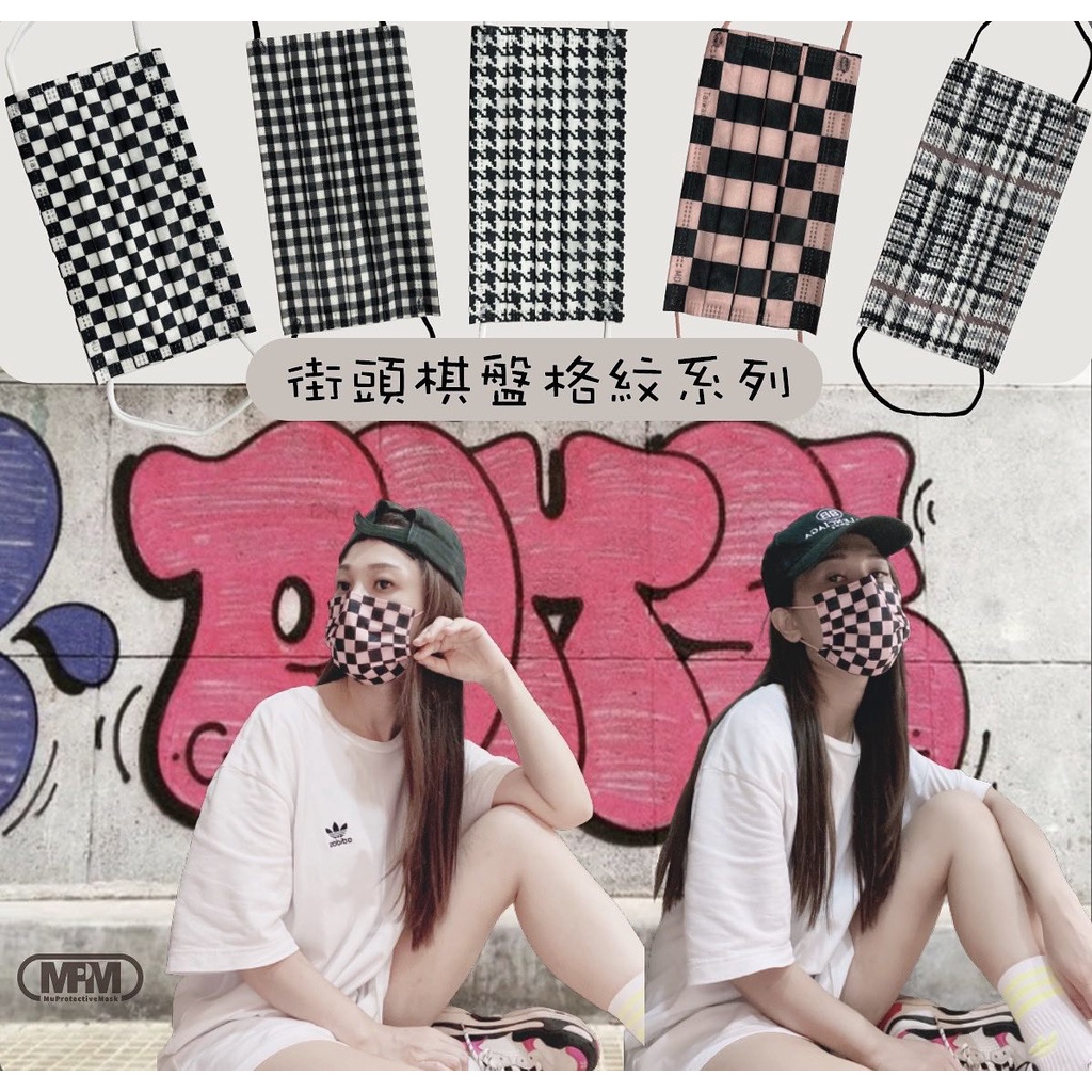 • 沐亨 平面醫療口罩【50片/盒】格子口罩 千鳥格口罩 棋盤口罩 成人造型口罩 滿版口罩 AMISS 台灣製+現貨 醫用