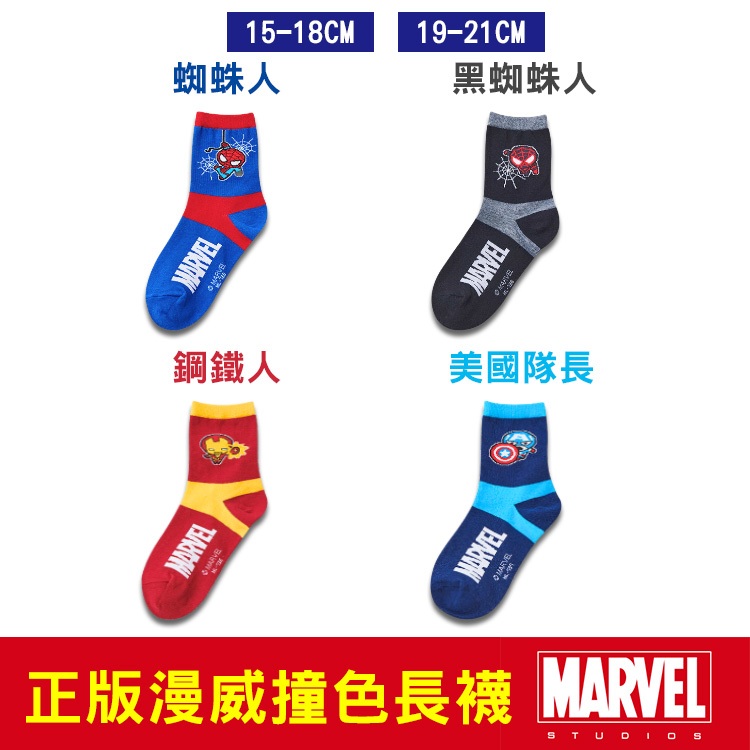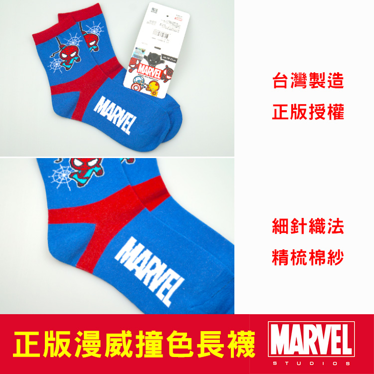 • 【AMISS】漫威撞色造型兒童長襪 蜘蛛人 正版授權台灣製 鋼鐵人 美國隊長 黑蜘蛛人 男童襪 女童襪 Marvel