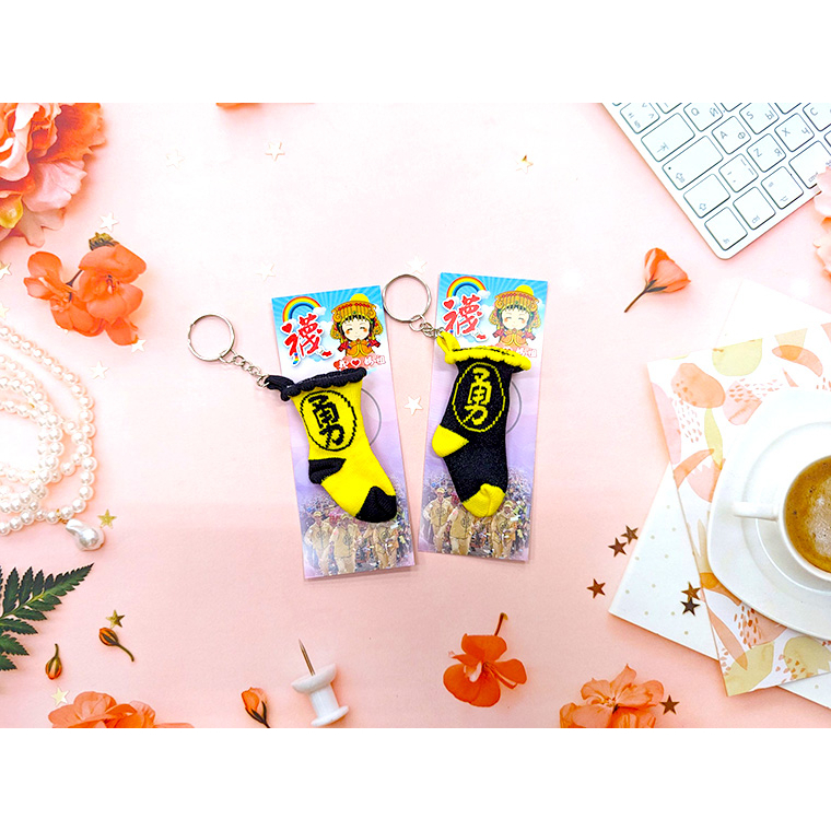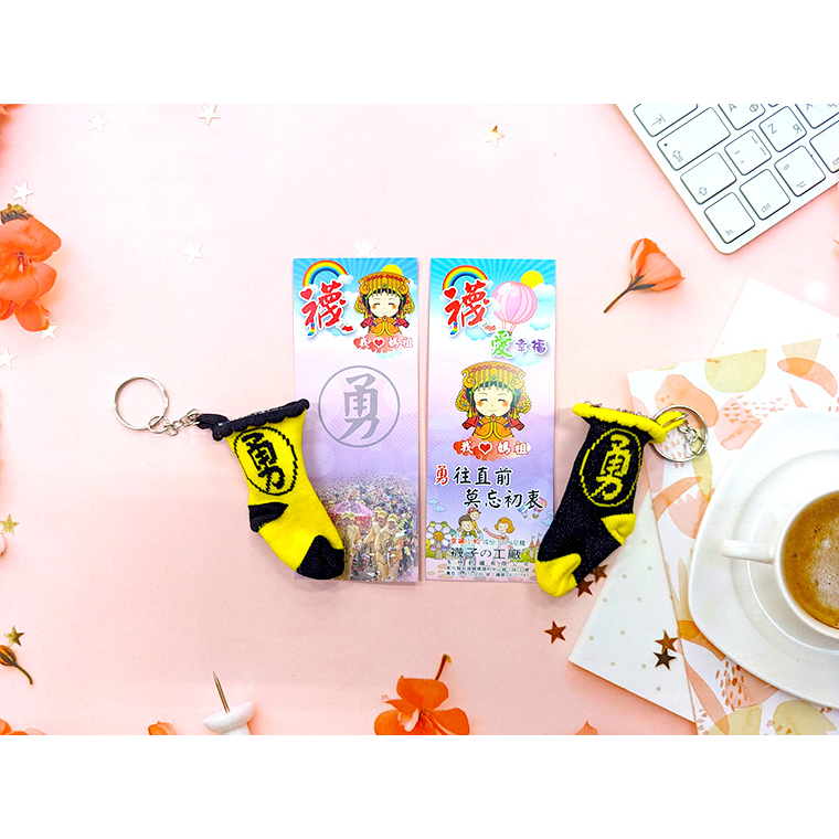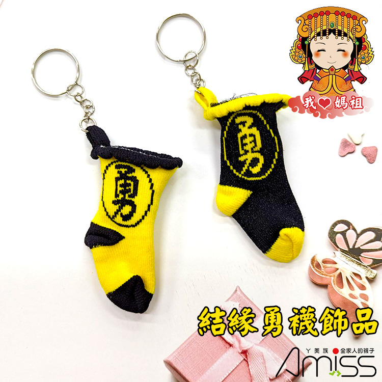 Amiss 勇往直前 勇襪鑰匙圈【官方授權】吊飾 台灣製造 小勇襪 白沙屯媽祖 結緣品 勇字鑰匙圈紅色(黃底/紅勇)(1個)|黑色(1個)|黃色(1個)|粉紅(1個)KeychainsAmiss全家人的襪子