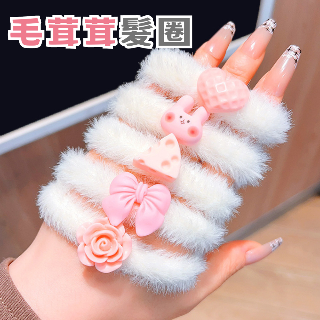 AMISS 毛茸茸髮圈 造型毛巾髮圈 甜心毛巾圈 搞怪髮圈 毛毛髮圈粉紅甜心組合(5個)|搞怪香腸嘴組合(5個)Hair AccessoriesAmiss全家人的襪子