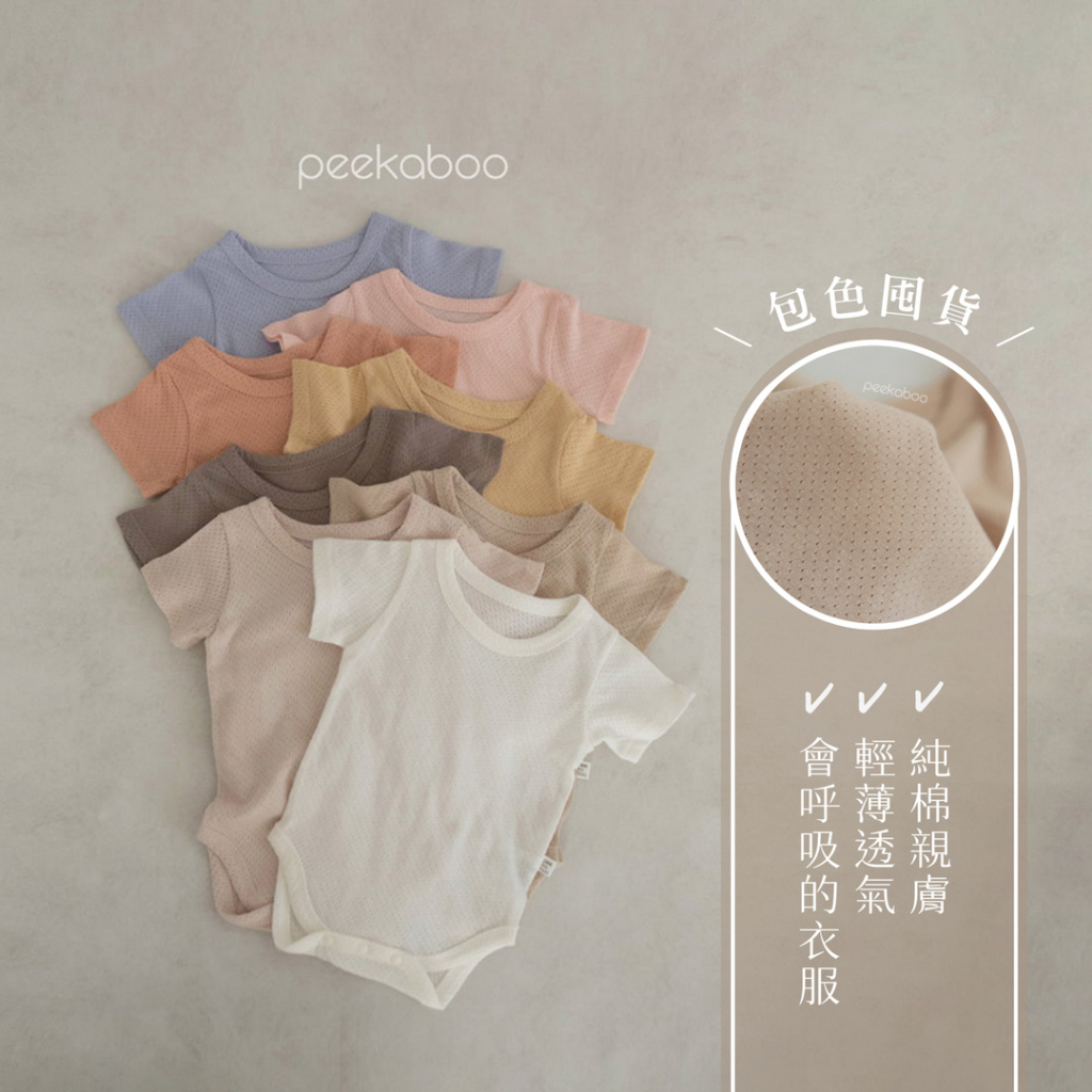 Peekaboo 透氣網眼短袖寶寶包屁衣【現貨+預購】洞洞衣 嬰兒包屁衣 女寶包屁衣 新生兒衣服 寶寶衣服 韓國童裝