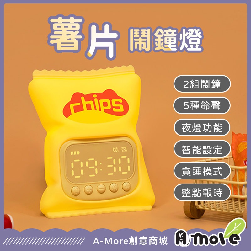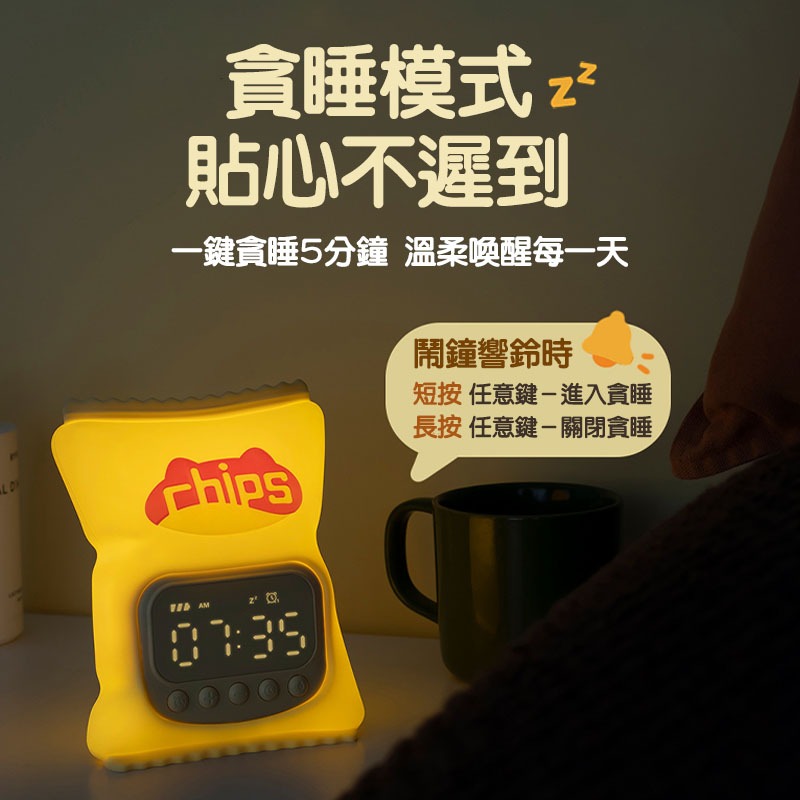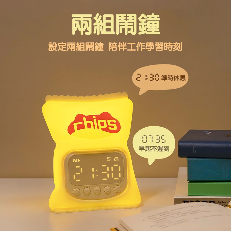 【台灣現貨】薯片鬧鐘燈 矽膠鬧鐘燈 電子鐘 夜燈 貪睡鬧鐘 整點報時 智能設定 鬧鐘 時鐘 床頭燈薯片鬧鐘燈ClocksA-More創意