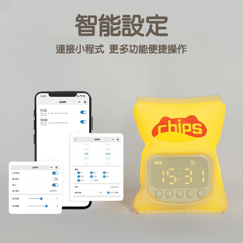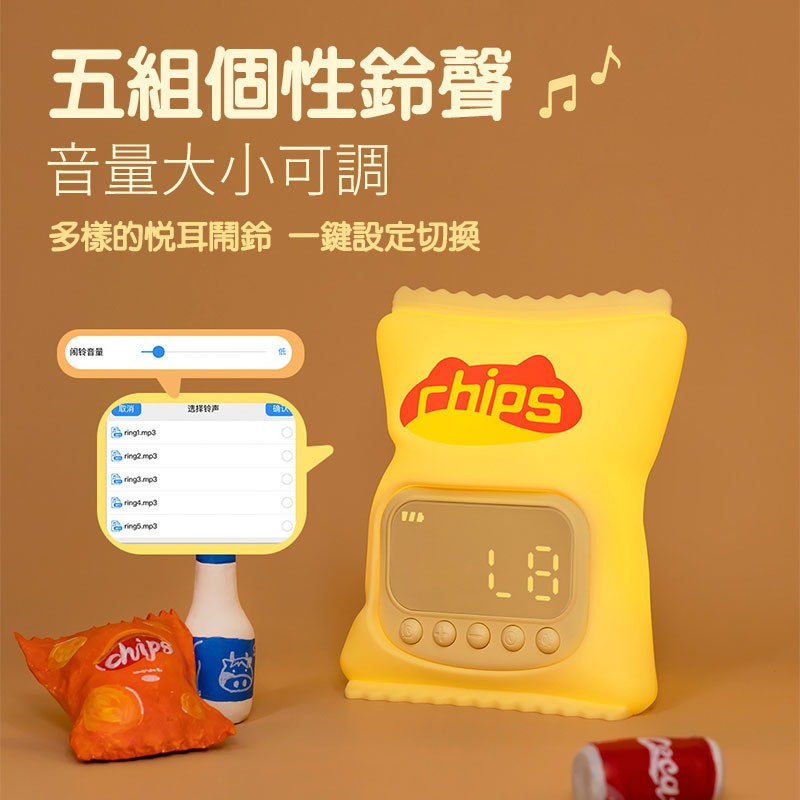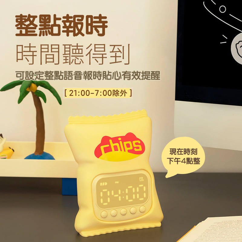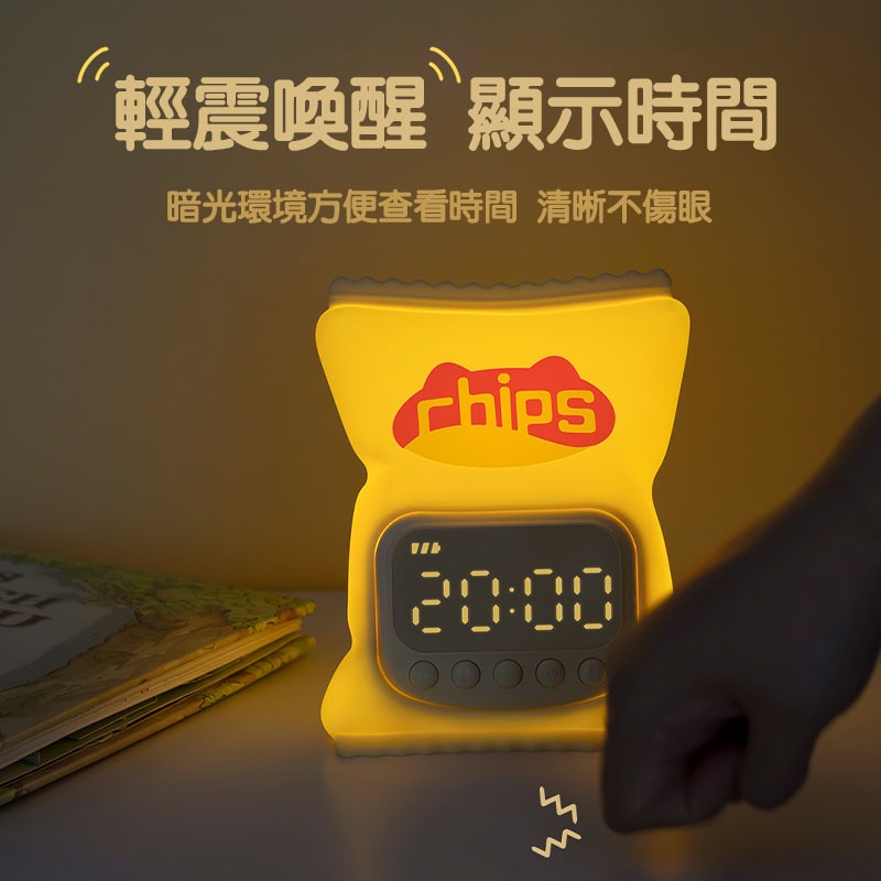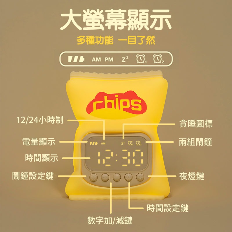 【台灣現貨】薯片鬧鐘燈 矽膠鬧鐘燈 電子鐘 夜燈 貪睡鬧鐘 整點報時 智能設定 鬧鐘 時鐘 床頭燈