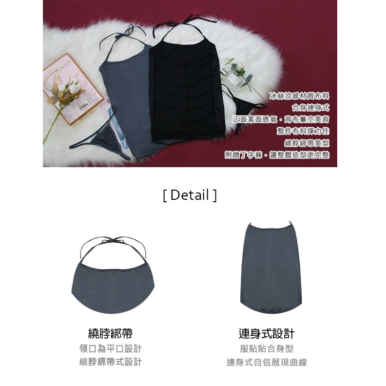 Amorous私密內衣「瑪格麗特」簍空美背修身睡裙【G24008】灰色,FREE|黑色,FREENight DressesAmorous私密內衣
