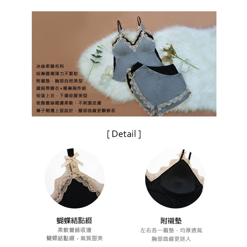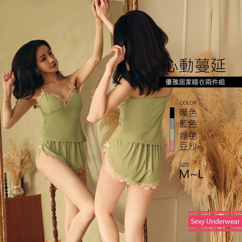 Amorous私密內衣「心動蔓延」優雅居家睡衣兩件組【G24029】綠色,M|綠色,L|藍色,M|藍色,L|黑色,M|黑色,L|豆沙,M|豆沙,LPajamasAmorous私密內衣