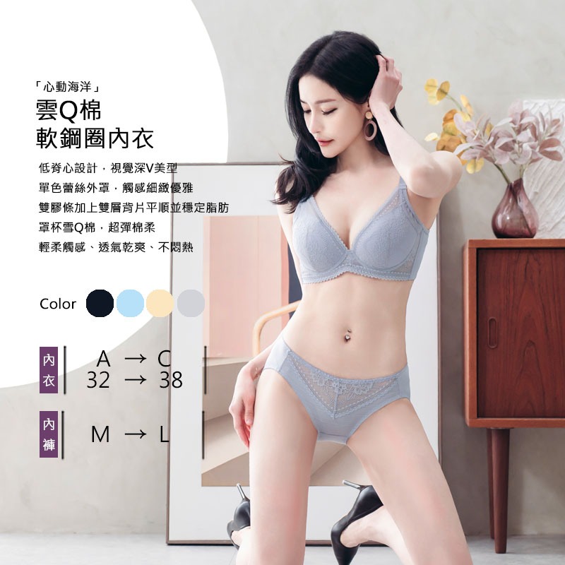 Amorous私密內衣「心動海洋」雲Q棉軟鋼圈內衣配褲【BA7713】藍色,M|藍色,L|水藍,M|水藍,L|膚色,M|膚色,L|紫色,M|紫色,LPantiesAmorous私密內衣