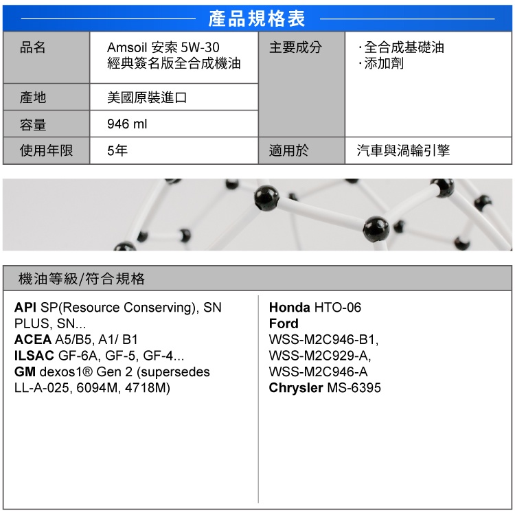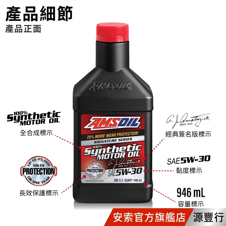 AMSOIL 安索 5W30 經典簽名版全合成機油 946ml【台灣總代理 源豐行】AMSOIL 安索 5W30 經典簽名版全合成機油 946ml【台灣總代理 源豐行】OilsAMSOIL 官方直營店
