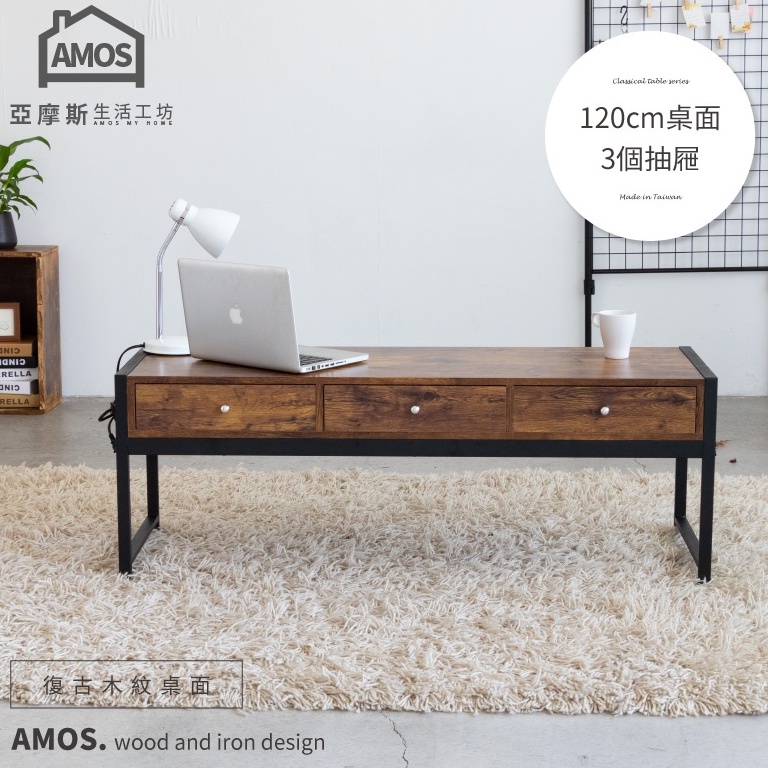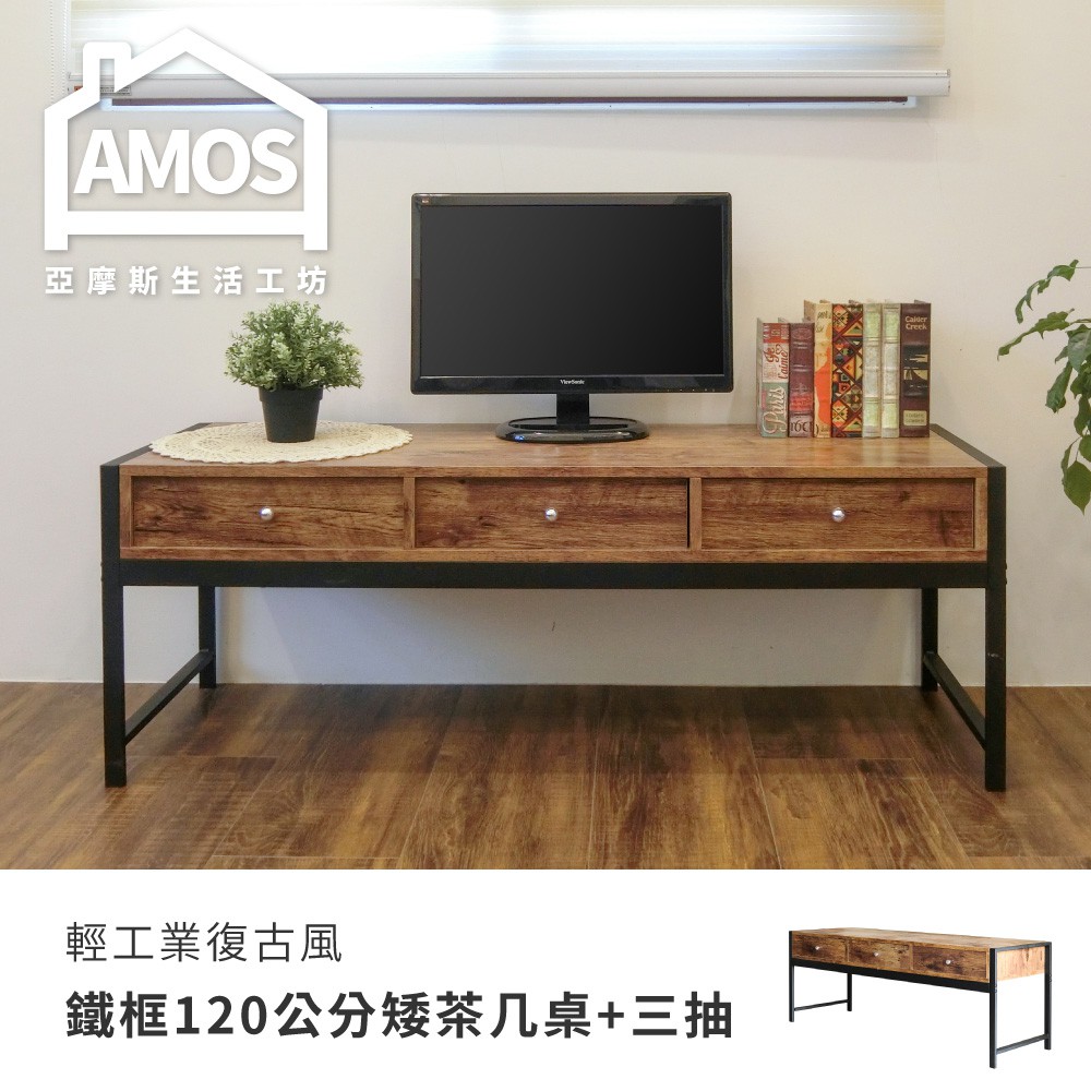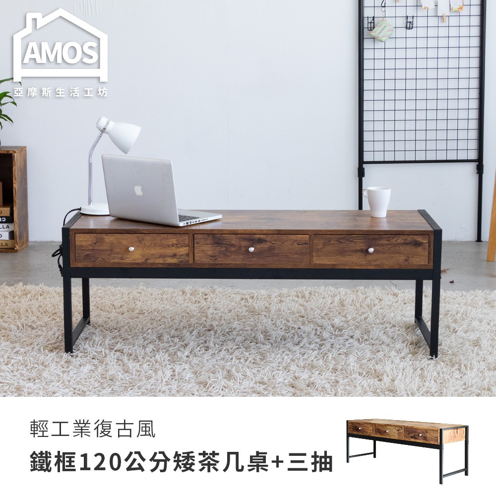 Amos 亞摩斯 輕工業復古風鐵框126公分矮茶几桌+三抽屜 茶几 客廳桌 沙發桌 咖啡桌 DCA052Amos 亞摩斯 輕工業復古風鐵框126公分矮茶几桌+三抽屜 茶几 客廳桌 沙發桌 咖啡桌 DCA052Desks & TablesAmos亞摩斯