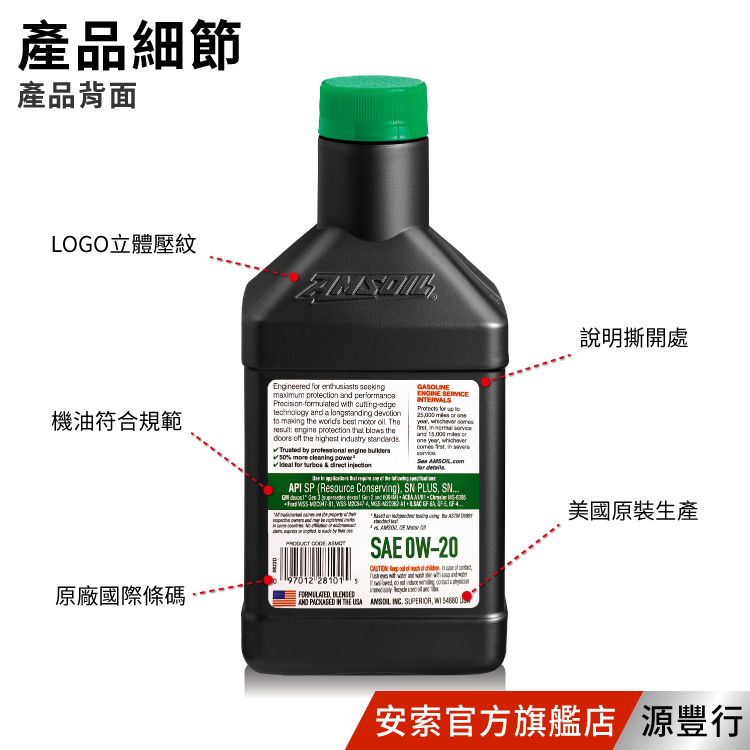 AMSOIL 安索 0W20 經典簽名版全合成機油 946ml【台灣總代理 源豐行】AMSOIL 安索 0W20 經典簽名版全合成機油 946ml【台灣總代理 源豐行】OilsAMSOIL 官方直營店
