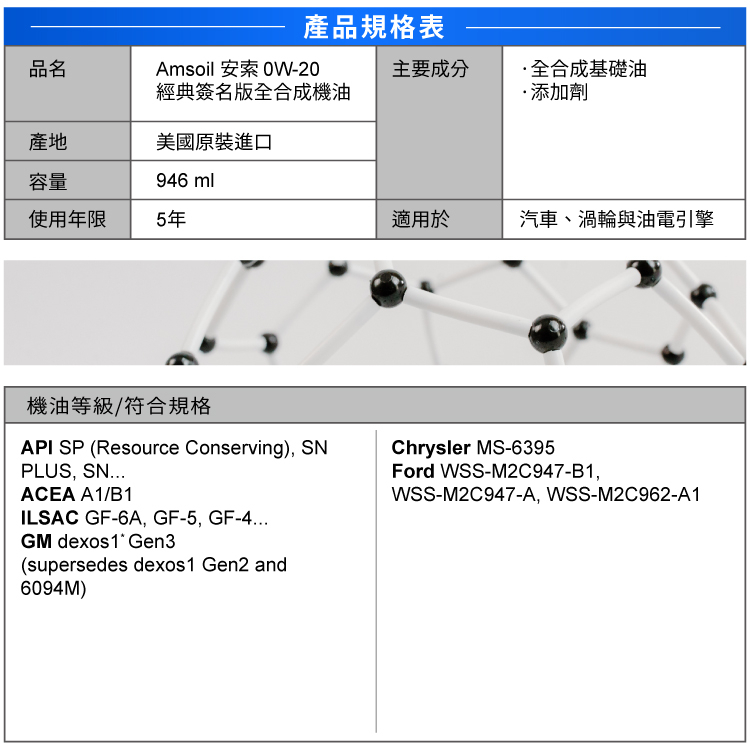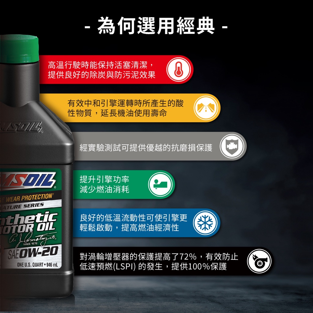 AMSOIL 安索 0W20 經典簽名版全合成機油 946ml 【箱購優惠區】【台灣總代理 源豐行】