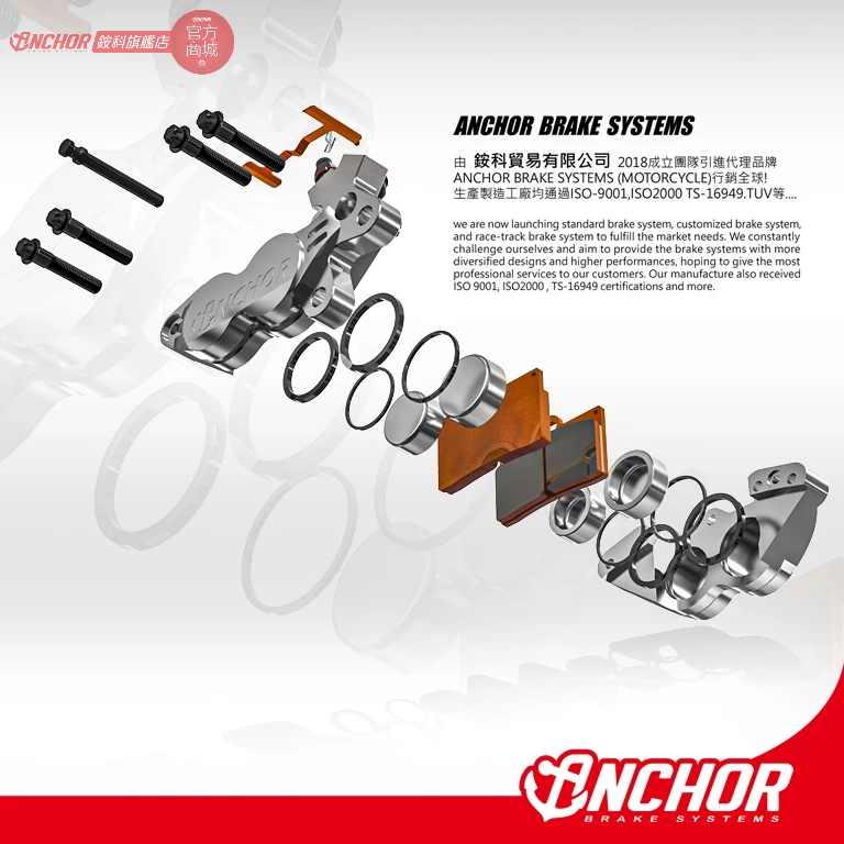 ANCHOR 銨科 ANC22 小對四 對四卡鉗 小活塞 卡鉗 同徑卡鉗 限量款 輕量化 銨科對四 卡鉗 40mm紅色,左卡|紅色,右卡|黑色,左卡|黑色,右卡|硬陽,左卡|硬陽,右卡|銀色(藍字),左卡|銀色(藍字),右卡Brake SystemANCHOR BRAKE 銨科官方旗艦店