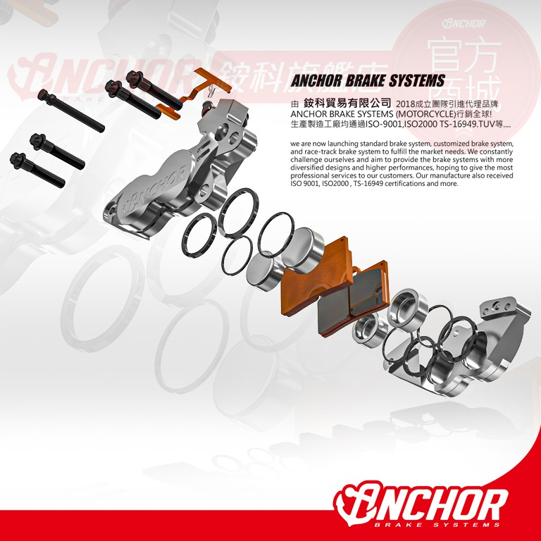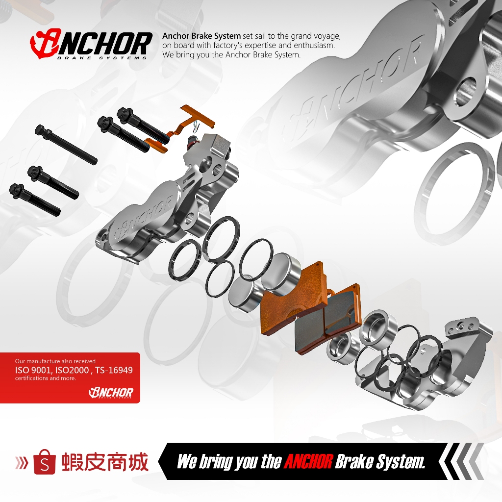 ANCHOR 銨科 ANC6 銨科卡鉗 基本款 銨科 大螃蟹 鍛造 卡鉗 krv drg卡鉗 對二 螃蟹卡鉗 jet黑色|硬陽|淺硬陽|紅色|金色|銀色(藍字)Brake SystemANCHOR BRAKE 銨科官方旗艦店