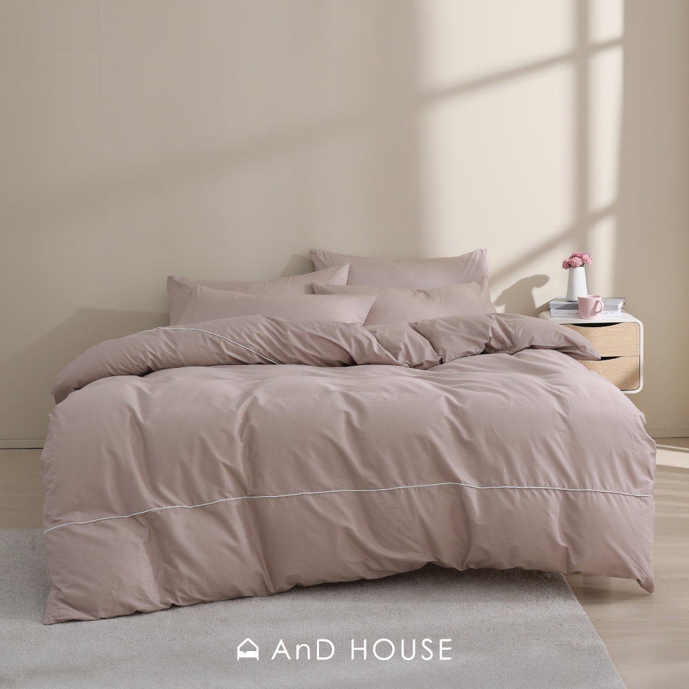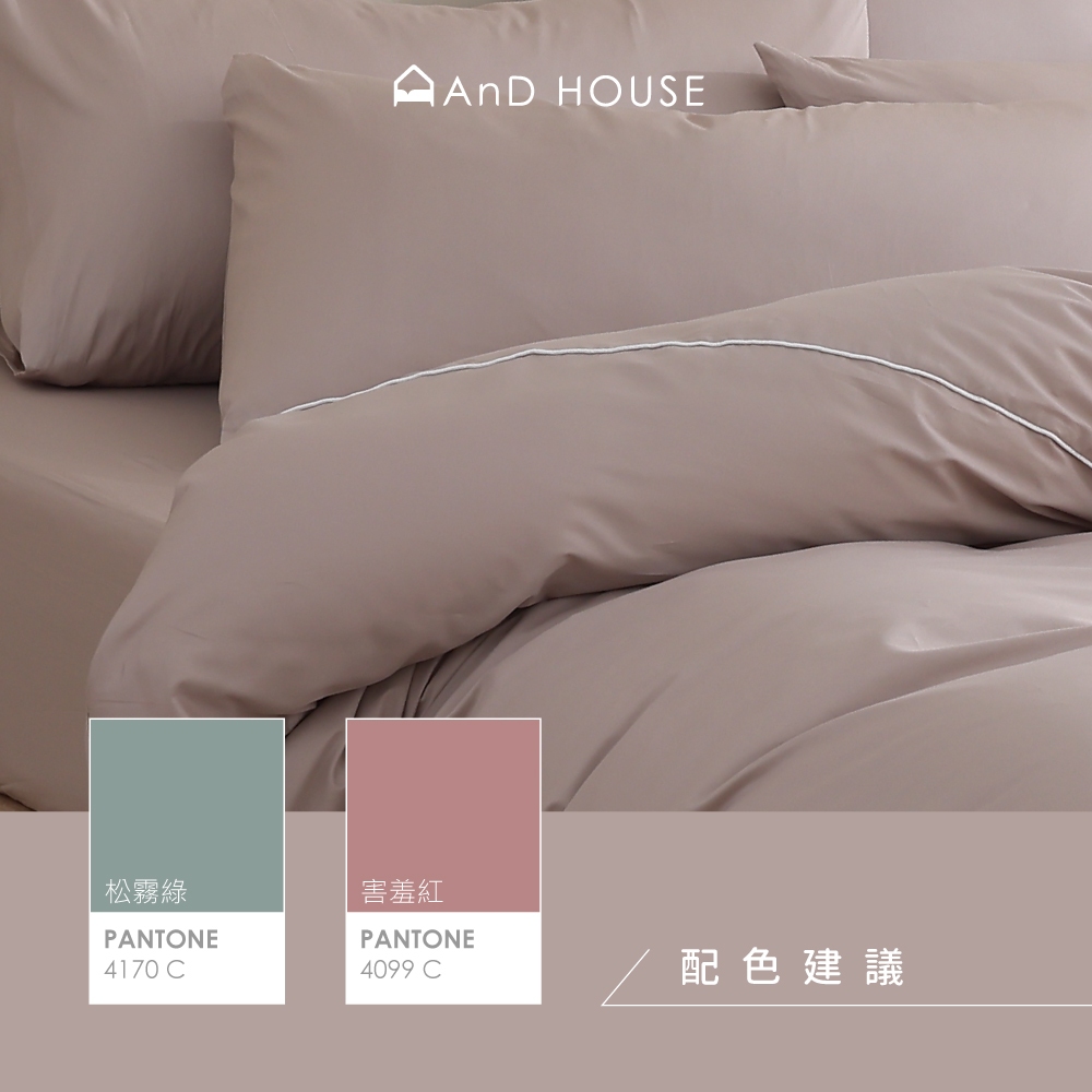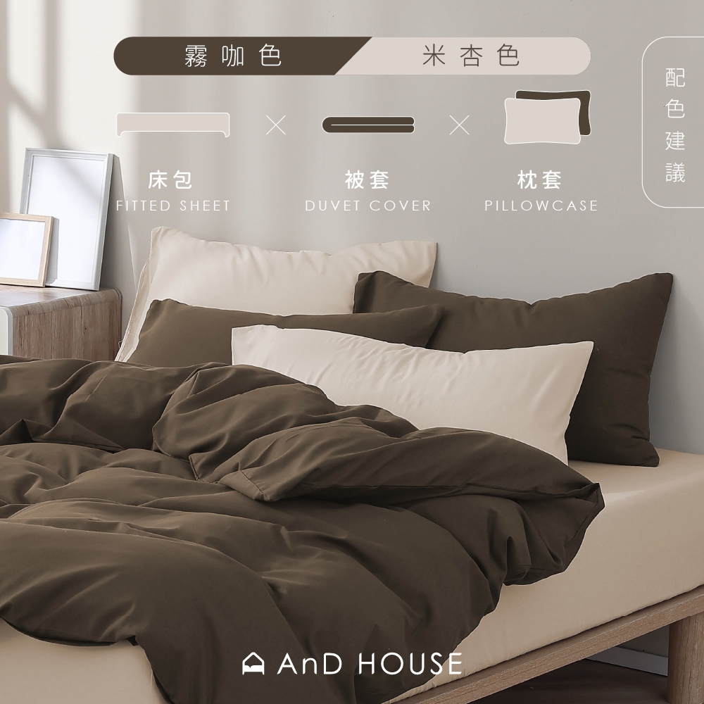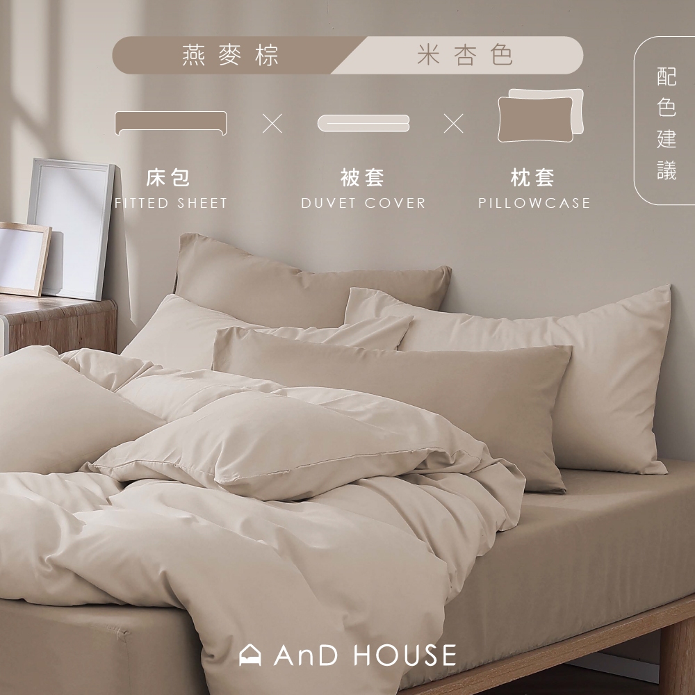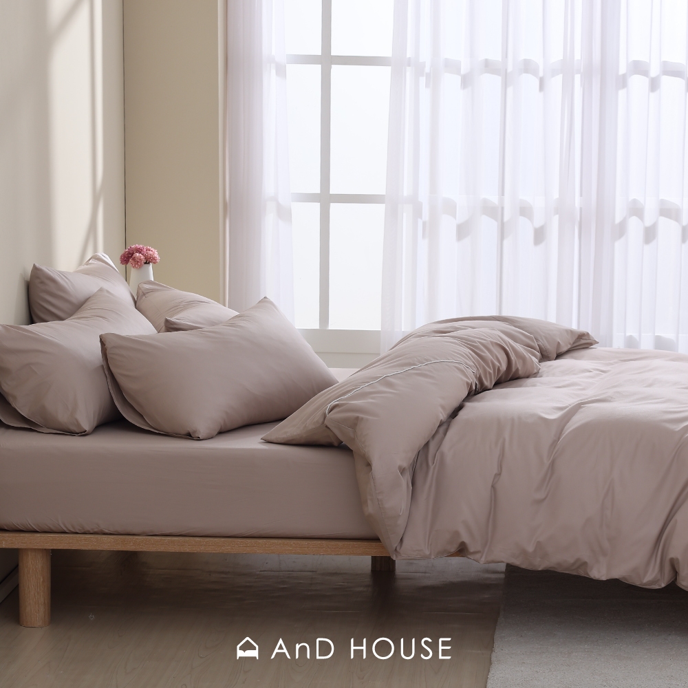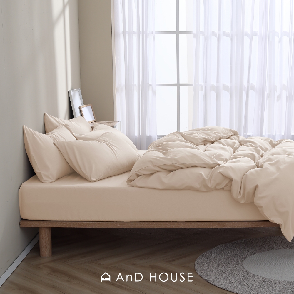 AnD House 天絲60支-淺茶米-床包被套組|安庭家居 素色 顏色任搭