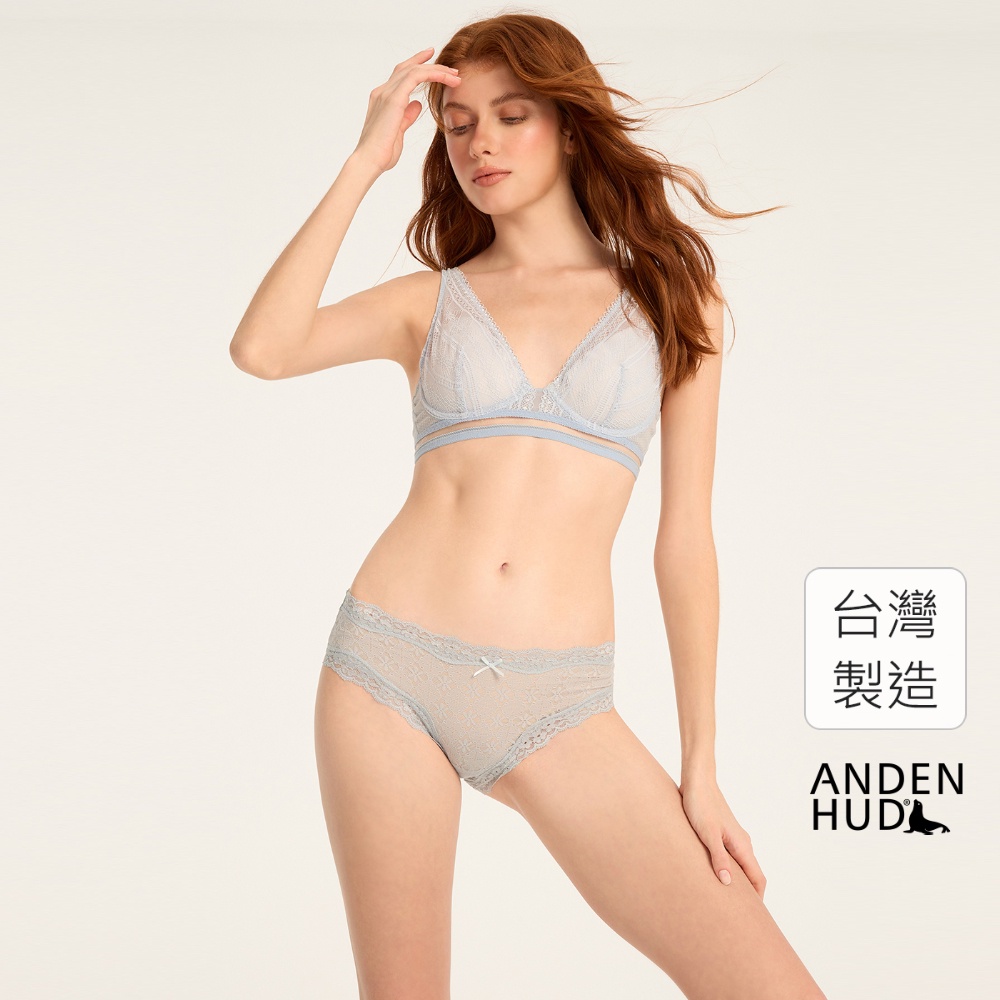 【Anden Hud】Feel Your Feelings.全網紗織帶中腰三角內褲(沐日藍-提花小花) 純棉台灣製M|L|XLPantiesAnden Hud 台灣製內著 官方旗艦店