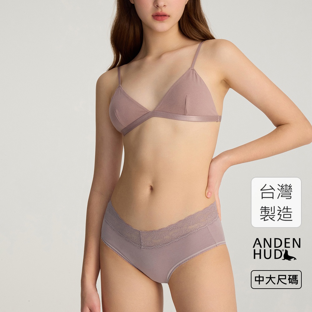 【Anden Hud】XXL 經典純色.窄版V蕾絲高腰三角內褲(蒼蘭紫) 純棉台灣製XXLPantiesAnden Hud 台灣製內著 官方旗艦店