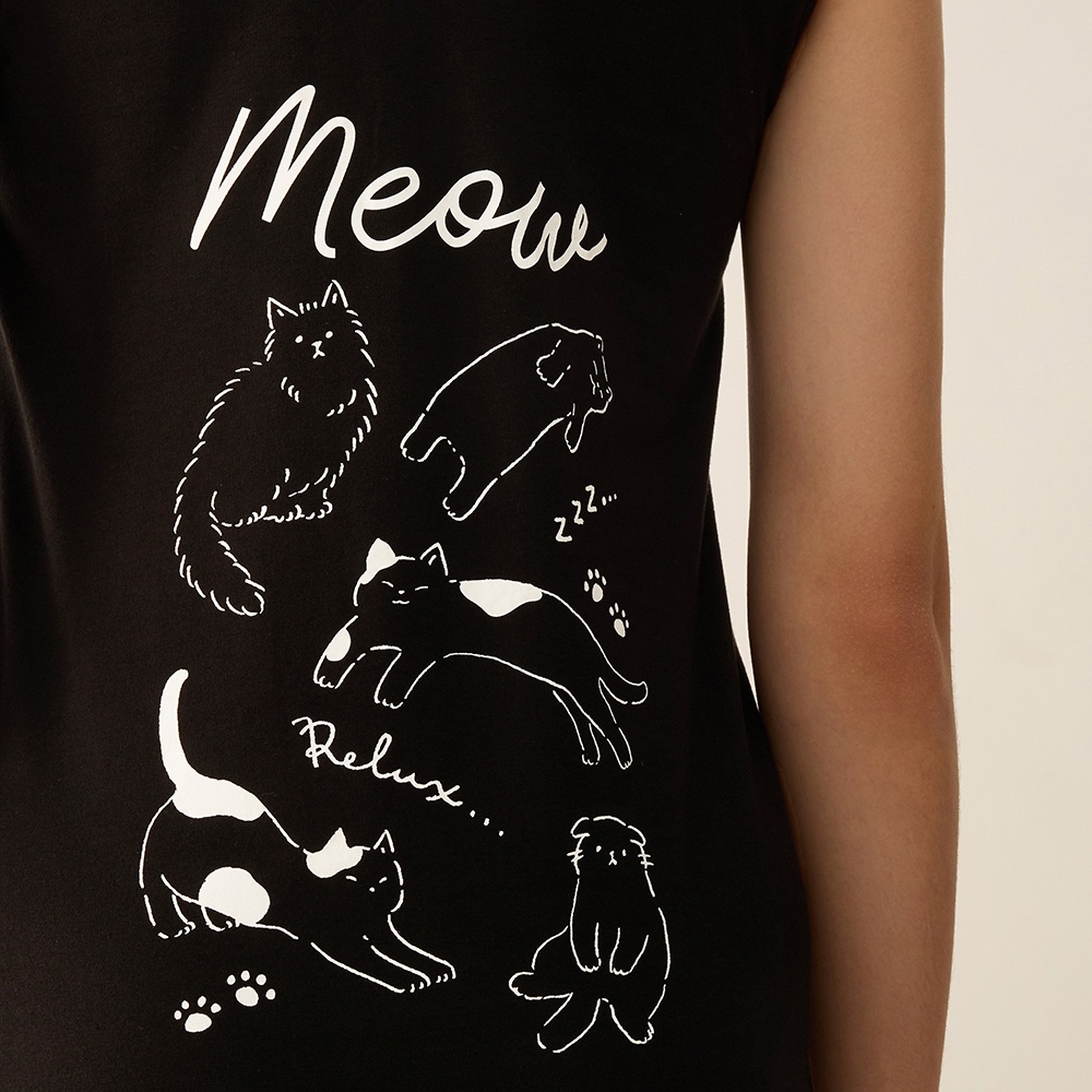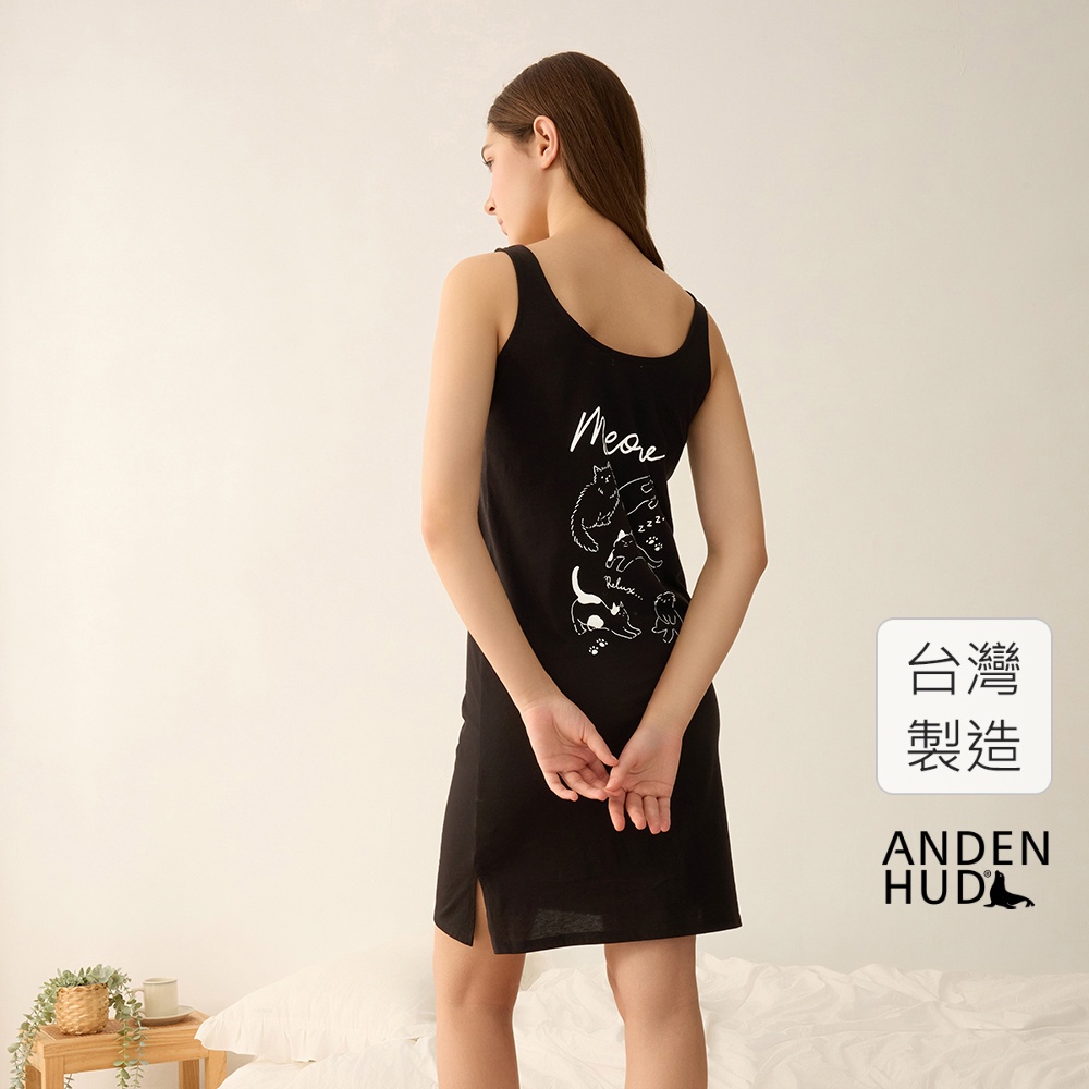 【Anden Hud】連身_陽光微暖.雙 U 領無袖開叉睡衣(黑色-刺繡波斯貓) 台灣製L|XL|S|MNight DressesAnden Hud 台灣製內著 官方旗艦店