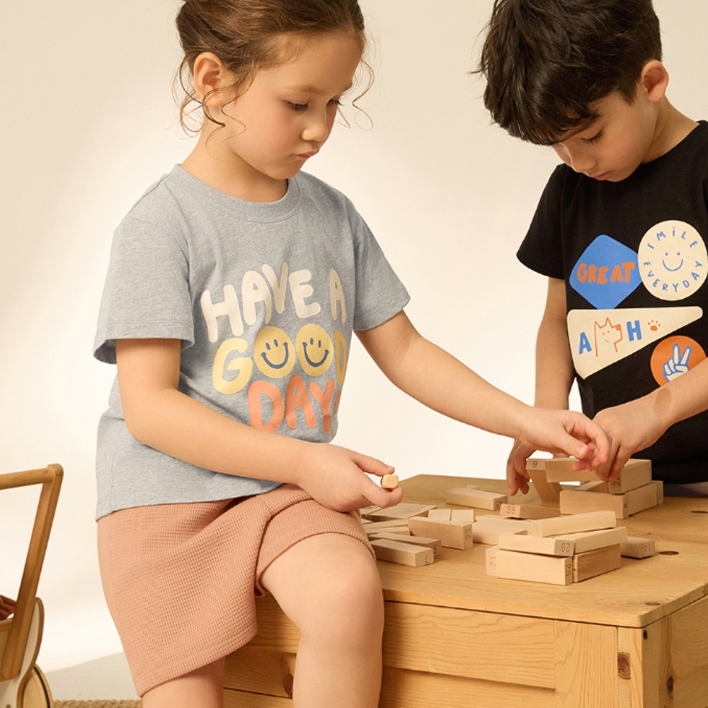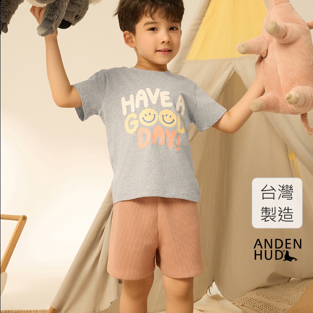 【Anden Hud】兒童成套_暖陽樂園.圓領基本短袖睡衣(淺麻灰-Good) 純棉台灣製110|120|130|140|150SleepwearAnden Hud 台灣製內著 官方旗艦店
