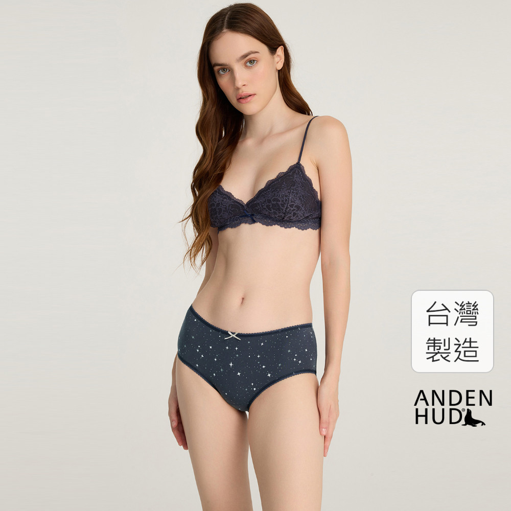 【Anden Hud】幸運星辰.花邊高腰三角內褲(深藍紫-繁星燦爛) 純棉台灣製M|L|XLPantiesAnden Hud 台灣製內著 官方旗艦店