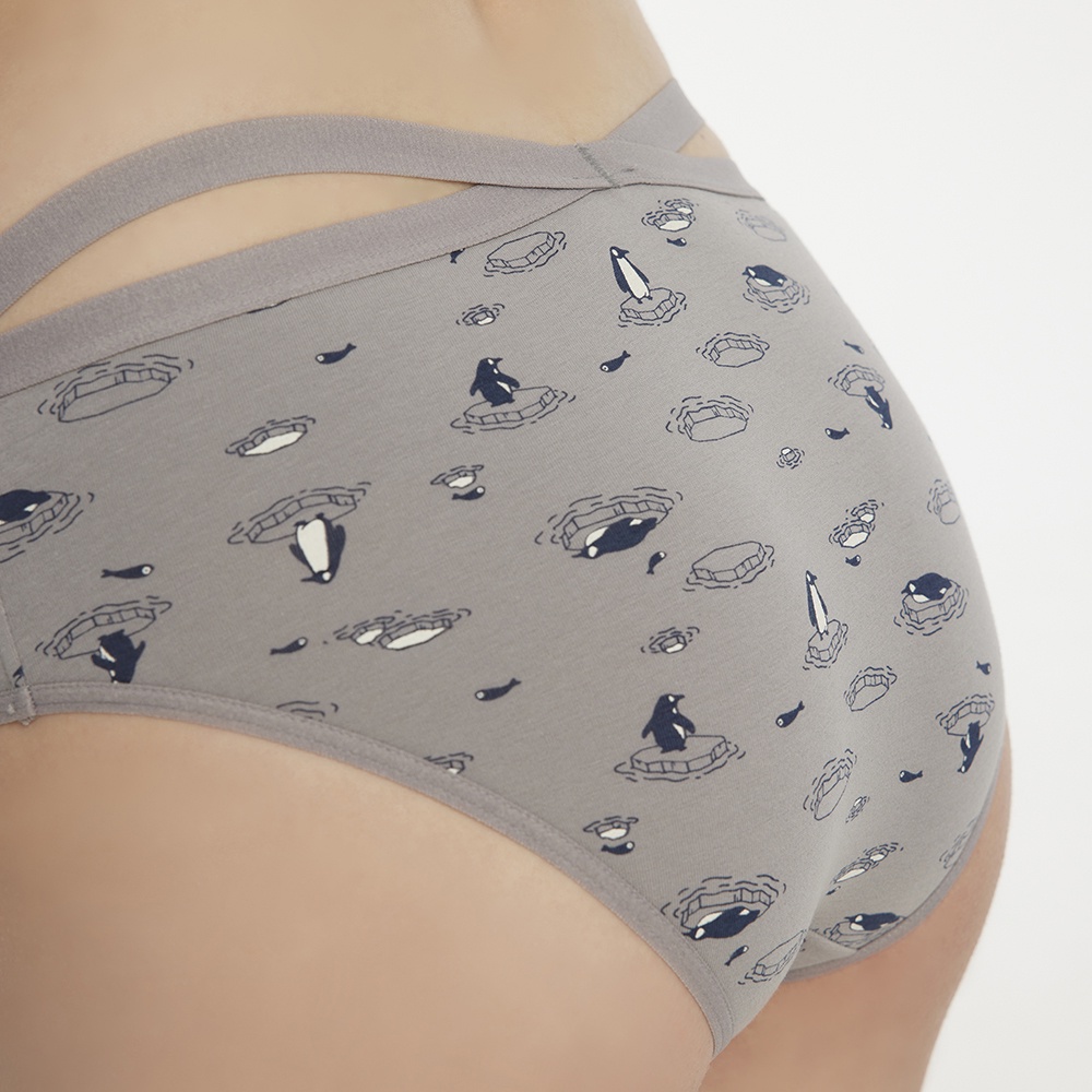 【Anden Hud】海洋之謎.交叉美臀中腰三角內褲(和平灰-漂浮企鵝) 純棉台灣製M|L|XLPantiesAnden Hud 台灣製內著 官方旗艦店