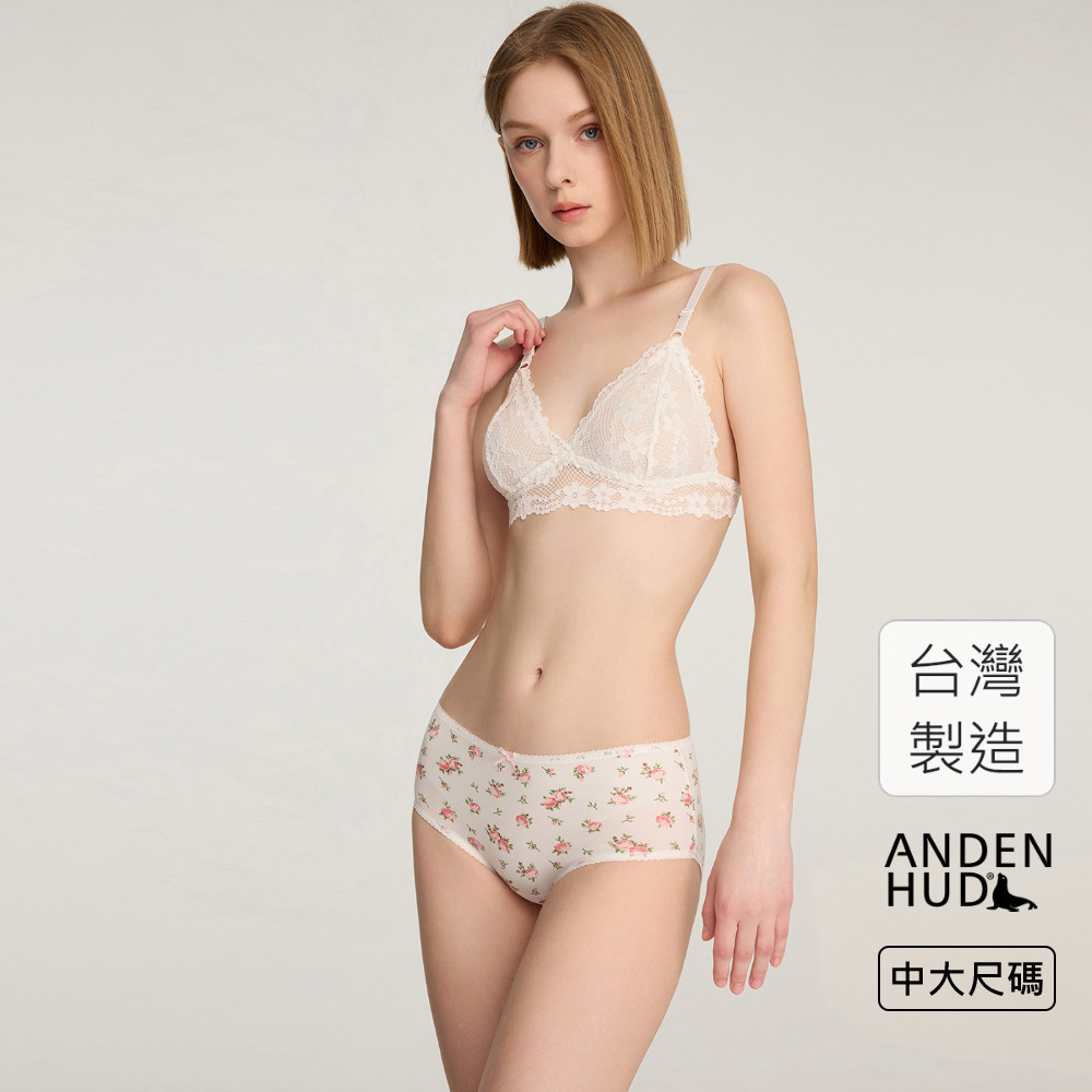 【Anden Hud】XXL Moonlit Swan.花邊高腰三角內褲(米白-玫瑰碎花) 純棉台灣製XXLPantiesAnden Hud 台灣製內著 官方旗艦店