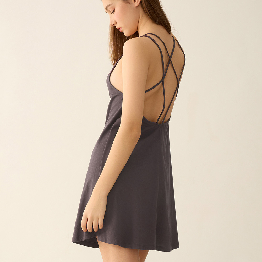 【Anden Hud】連身_夏日暖陽.吸濕排汗後星形肩帶露背睡衣(夜幕紫) 台灣製S|M|L|XLPajamasAnden Hud 台灣製內著 官方旗艦店