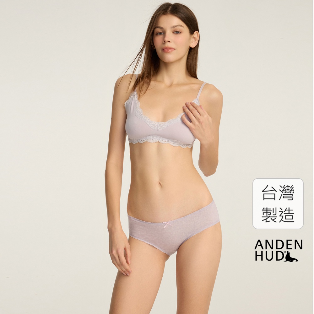【Anden Hud】秘密花園.花邊中腰三角內褲(麻紫-虛線蝴蝶結) 純棉台灣製M|L|XLPantiesAnden Hud 台灣製內著 官方旗艦店