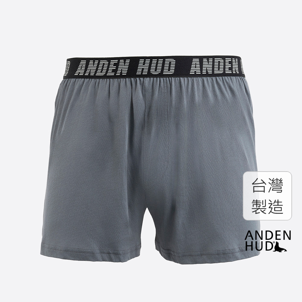 【Anden Hud】男款_Newtro Street.不開襟純棉寬鬆四角內褲(塵石藍-黑橫條緊帶) 純棉台灣製