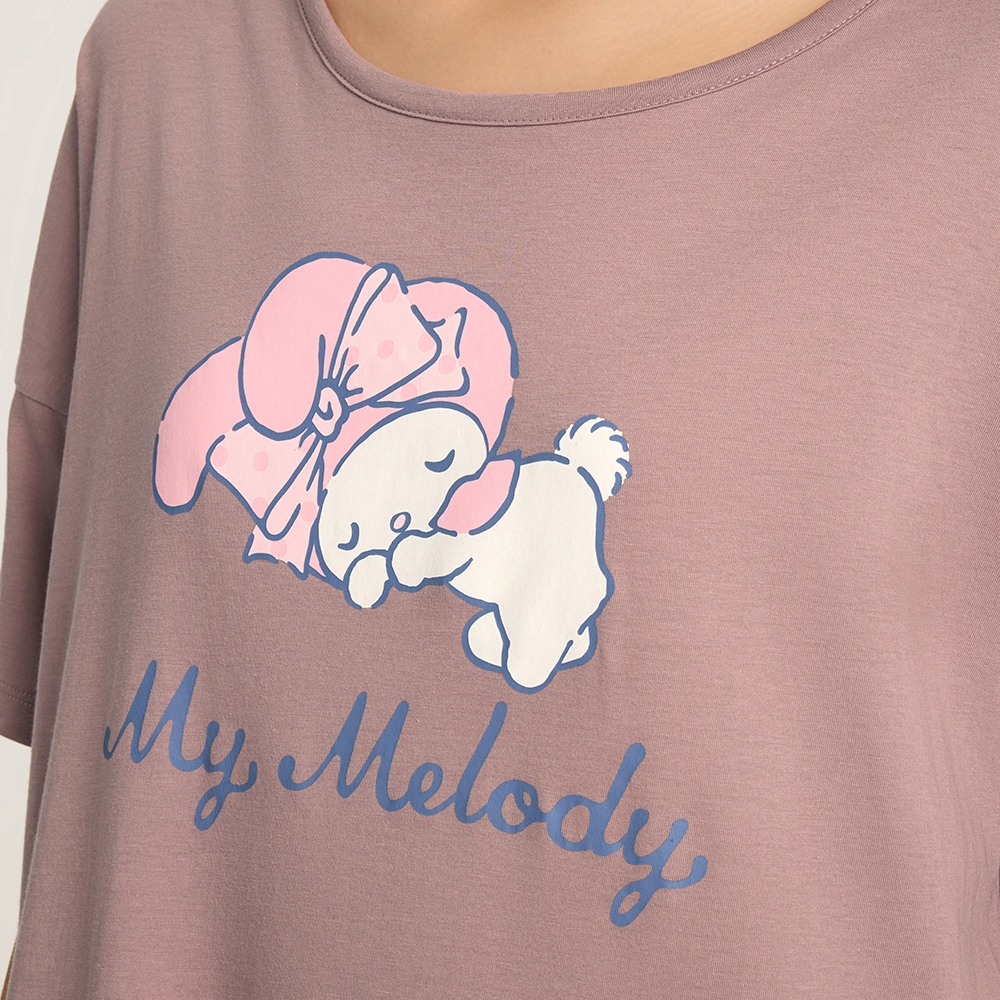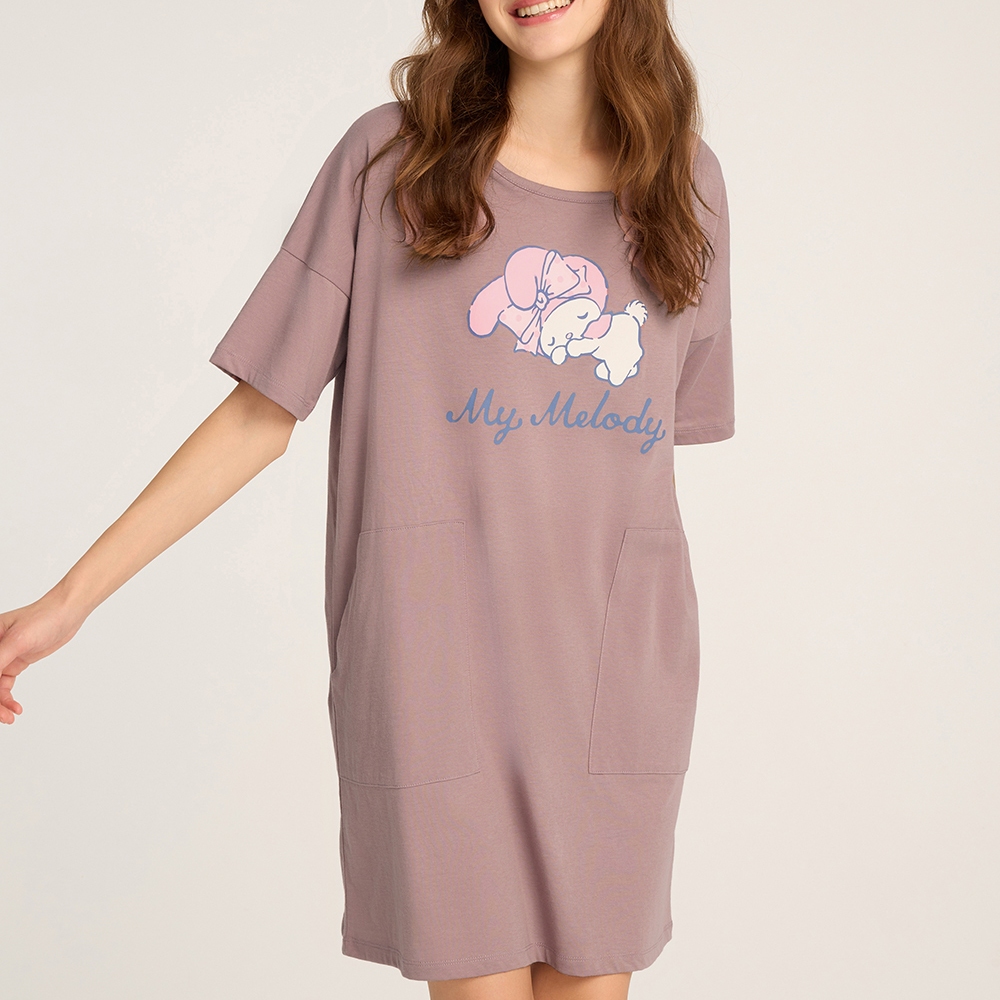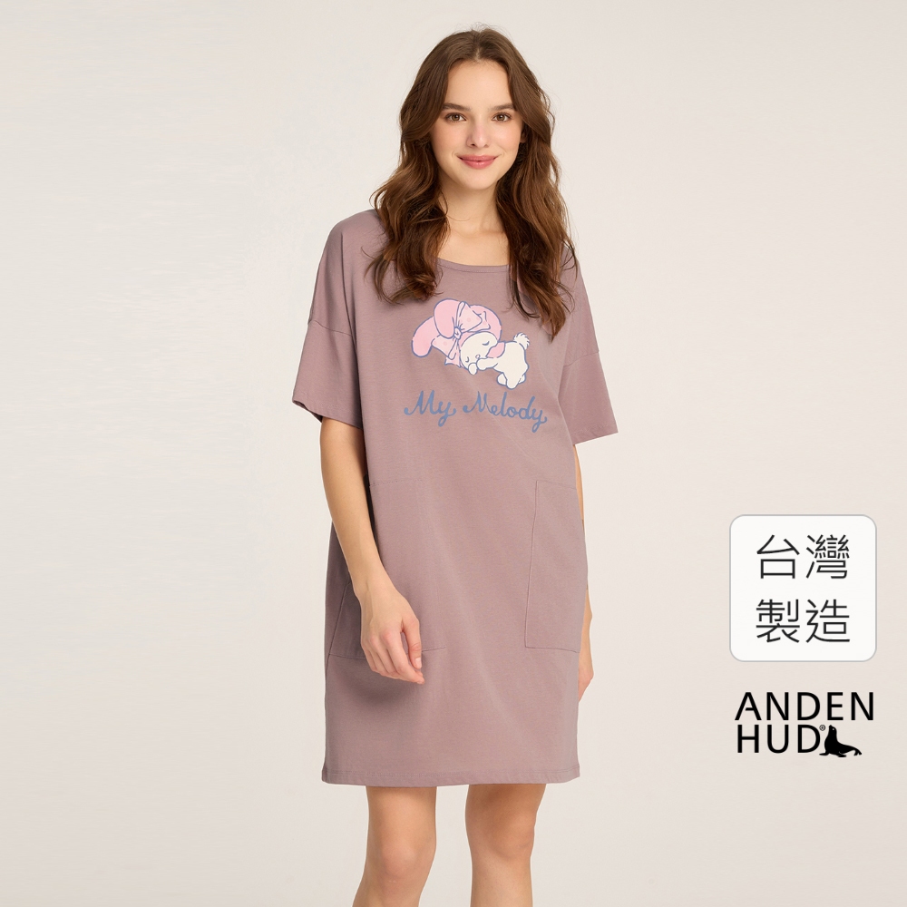 【Anden Hud】連身_美樂蒂系列.落肩五分袖寬鬆口袋睡衣(藕紫-睡覺美樂蒂) 海外禁售L/XL|S/MPajamasAnden Hud 台灣製內著 官方旗艦店