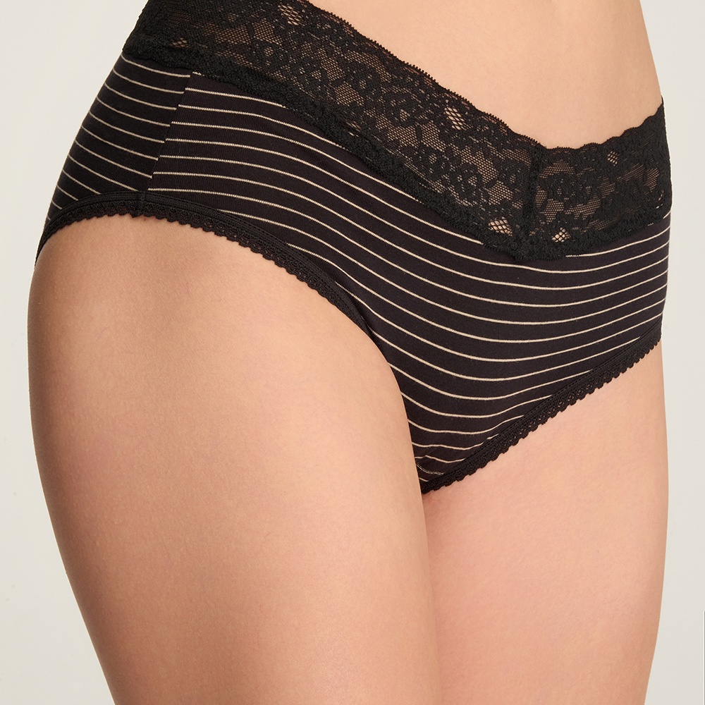 【Anden Hud】XXL 復古街頭.窄版V蕾絲高腰三角內褲(黑-卡其條紋) 純棉台灣製XXLPantiesAnden Hud 台灣製內著 官方旗艦店