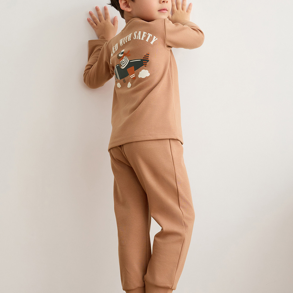【Anden Hud】男童成套_小旅行家.圓領長袖睡衣(摩卡慕斯-開飛機) 台灣製110|120|130|140|150SleepwearAnden Hud 台灣製內著 官方旗艦店