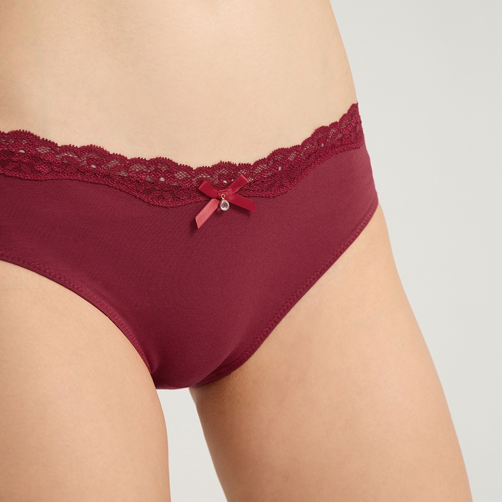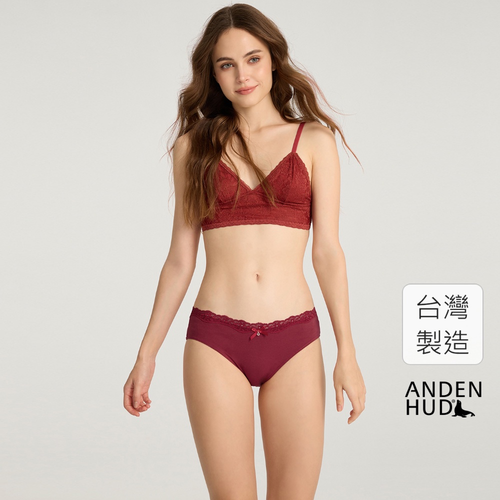 【Anden Hud】Glamour Night.波浪蕾絲2/3包臀中腰三角內褲(殷紅-水鑽吊飾) 純棉台灣製M|L|XLPantiesAnden Hud 台灣製內著 官方旗艦店