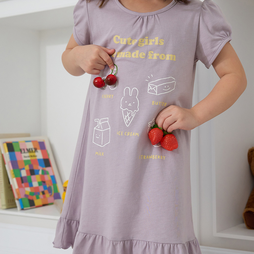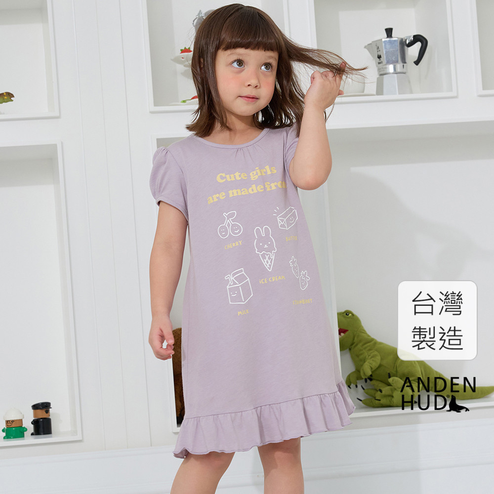 【Anden Hud】女童連身_Sweet Tooth.莫代爾棉圓領荷葉短袖睡衣(泡泡紫-甜點女孩) 台灣製150|110|120|130|140SleepwearAnden Hud 台灣製內著 官方旗艦店