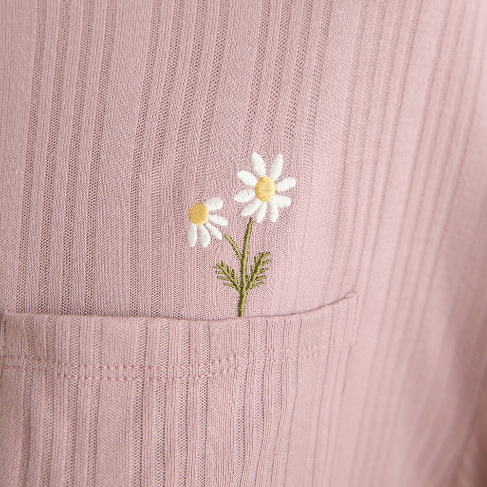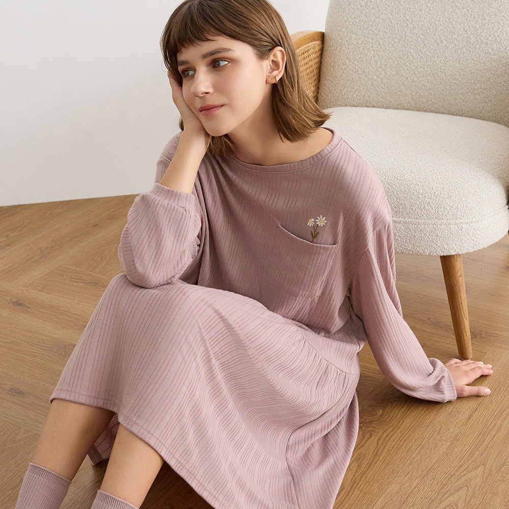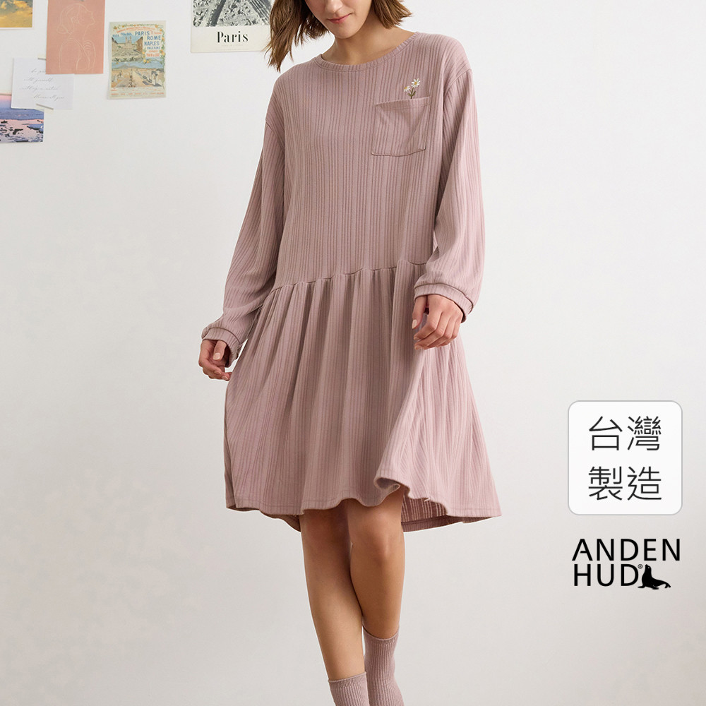 【Anden Hud】連身_Travel memory.抽針細褶長袖睡衣(多維爾紫-刺繡小雛菊) 台灣製S/M|L/XLPajamasAnden Hud 台灣製內著 官方旗艦店