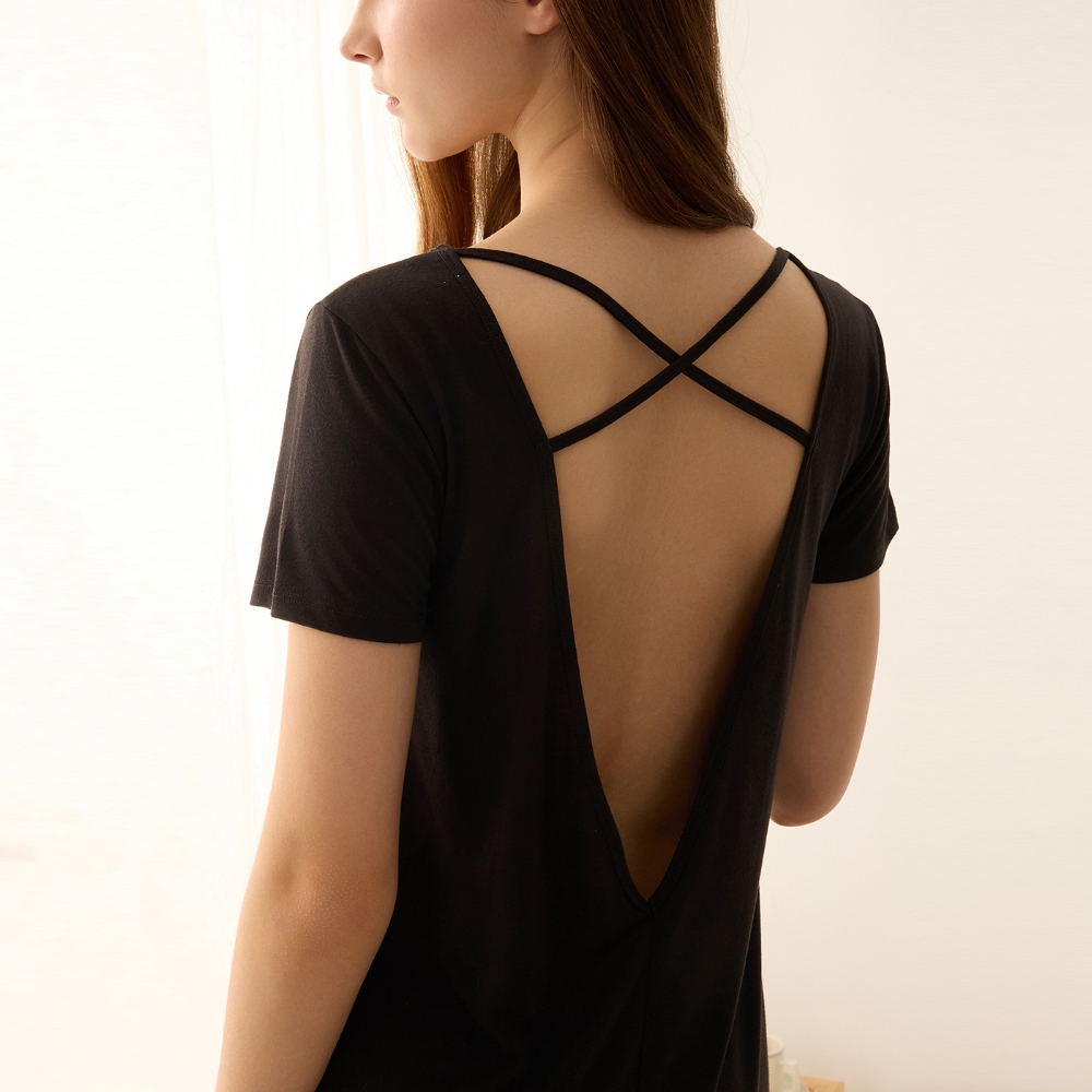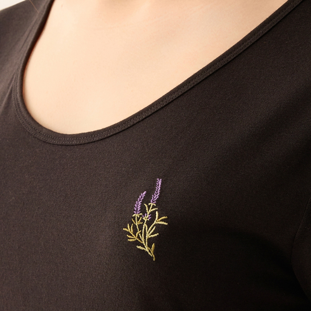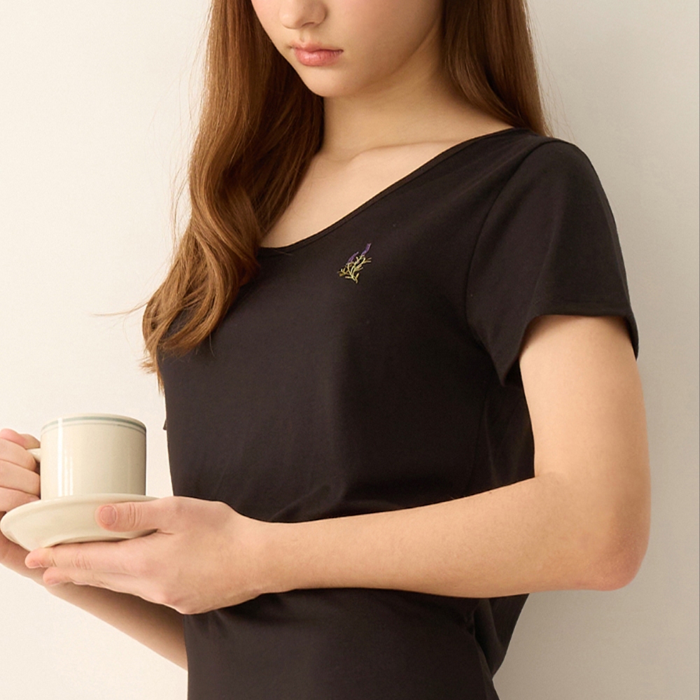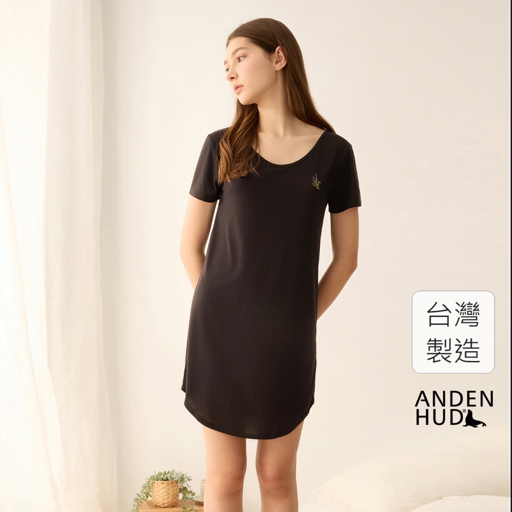 【Anden Hud】連身_夏日暖陽.後深 V 露背短袖睡衣(黑色-刺繡薰衣草) 台灣製S|M|L|XLPajamasAnden Hud 台灣製內著 官方旗艦店