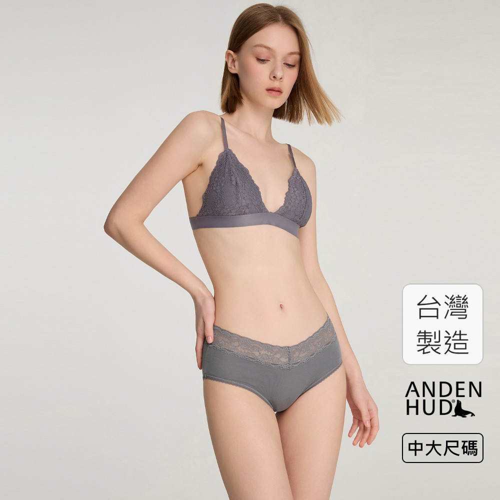 【Anden Hud】XXL 經典純色.窄版V蕾絲高腰三角內褲(幽玄藍) 純棉台灣製XXLPantiesAnden Hud 台灣製內著 官方旗艦店
