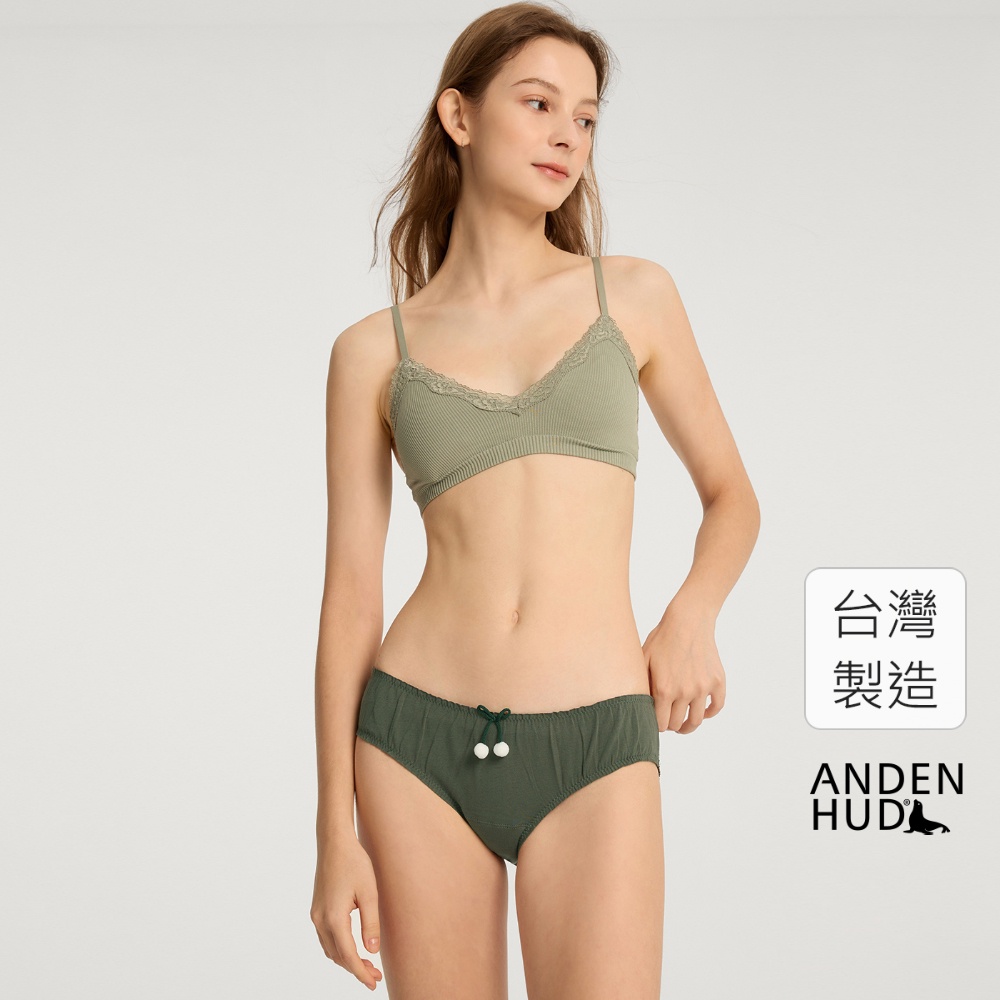 【Anden Hud】冬日森林.花苞中腰三角內褲(靈綠-毛球蝴蝶結) 純棉台灣製M|L|XLPantiesAnden Hud 台灣製內著 官方旗艦店