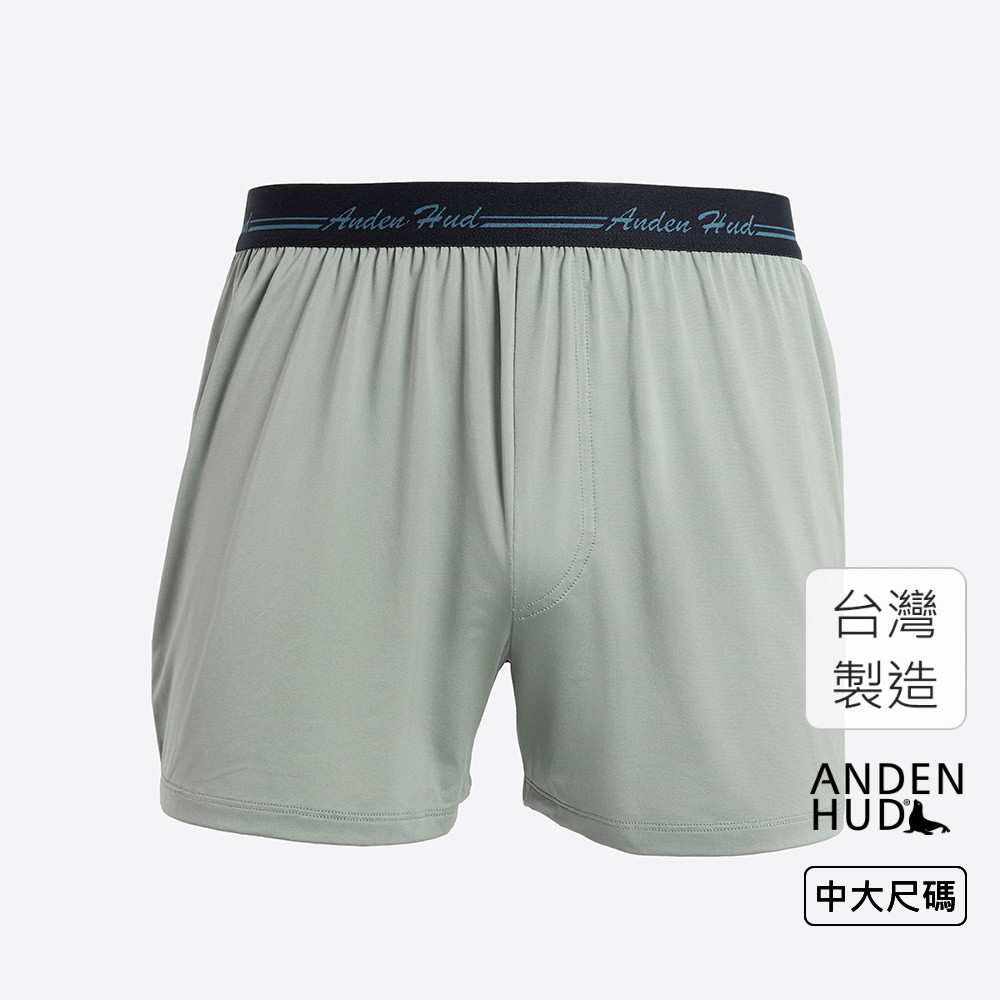 【Anden Hud】XXL男款_吸濕排汗機能系列.不開襟寬鬆腰帶四角內褲(礁石灰-手寫logo黑緊帶) 台灣製XXLUnderwearAnden Hud 台灣製內著 官方旗艦店