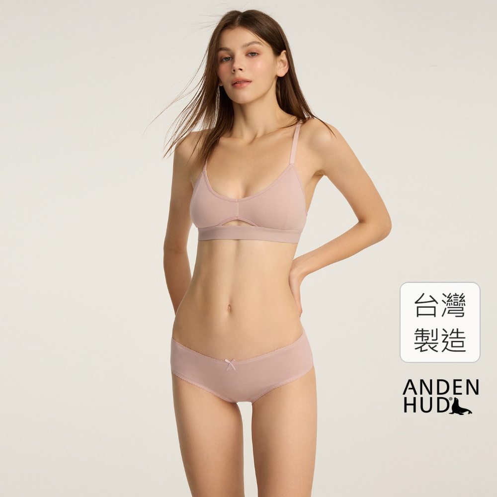 【Anden Hud】秘密花園.花邊中腰三角內褲(罌粟粉-虛線蝴蝶結) 純棉台灣製M|L|XLPantiesAnden Hud 台灣製內著 官方旗艦店
