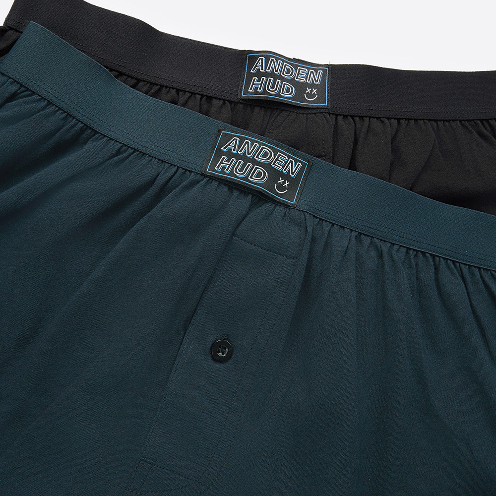 【Anden Hud】XXL男款_Newtro Street.純棉寬鬆四角內褲(墨黑藍-笑臉織標) 純棉台灣製XXLUnderwearAnden Hud 台灣製內著 官方旗艦店