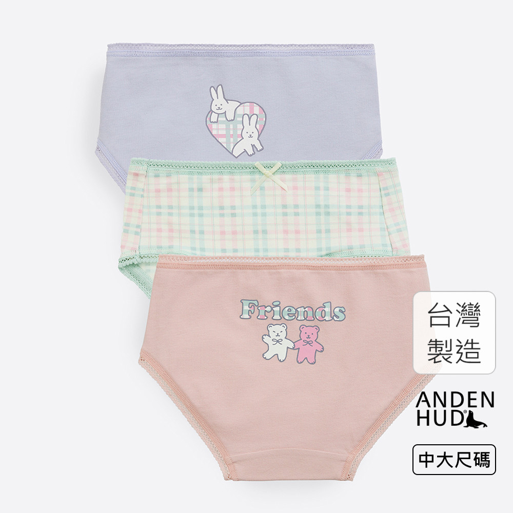 【Anden Hud】160女童三入組_ 抗菌系列.緊帶三角內褲(格紋小動物) 純棉台灣製160Underwear & InnerwearAnden Hud 台灣製內著 官方旗艦店