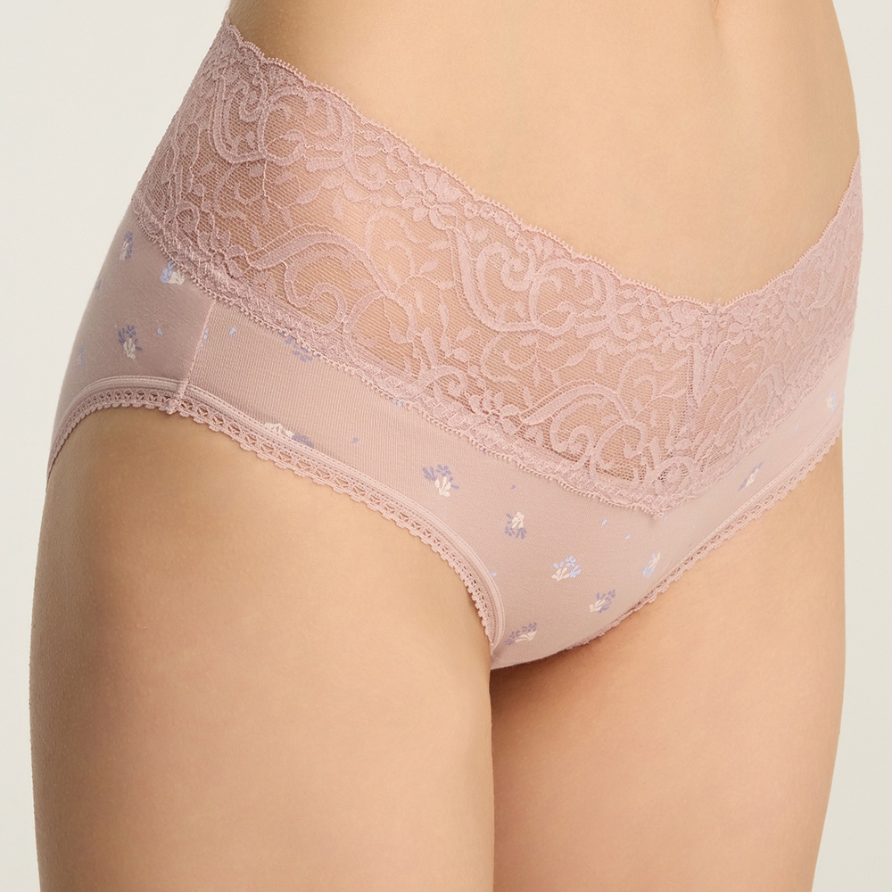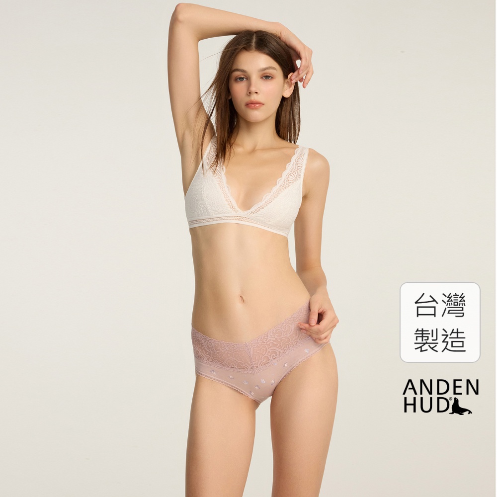 【Anden Hud】夢境花園.V蕾絲中腰三角內褲(罌粟粉-紫色小花) 純棉台灣製M|L|XLPantiesAnden Hud 台灣製內著 官方旗艦店