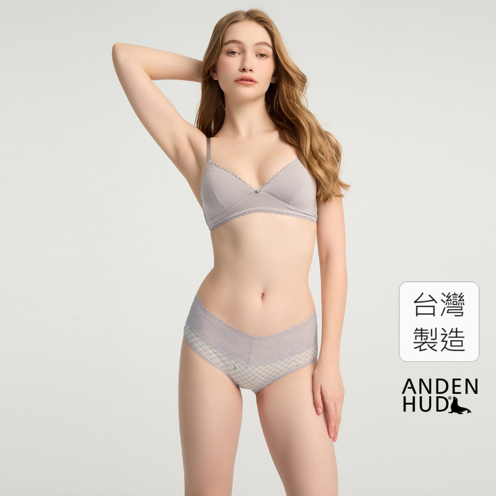 【Anden Hud】法式渡假.V蕾絲中腰三角內褲(灰瘀紫-薰衣格調) 純棉台灣製M|L|XLPantiesAnden Hud 台灣製內著 官方旗艦店