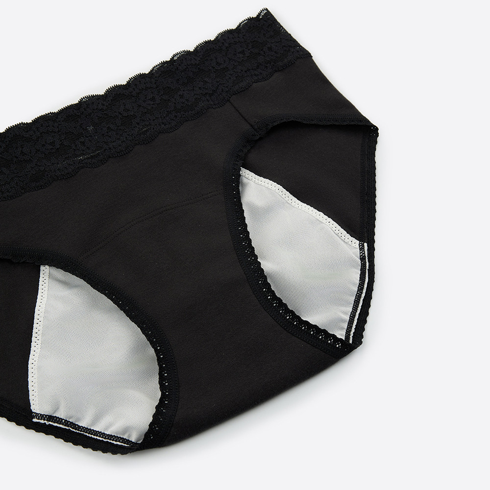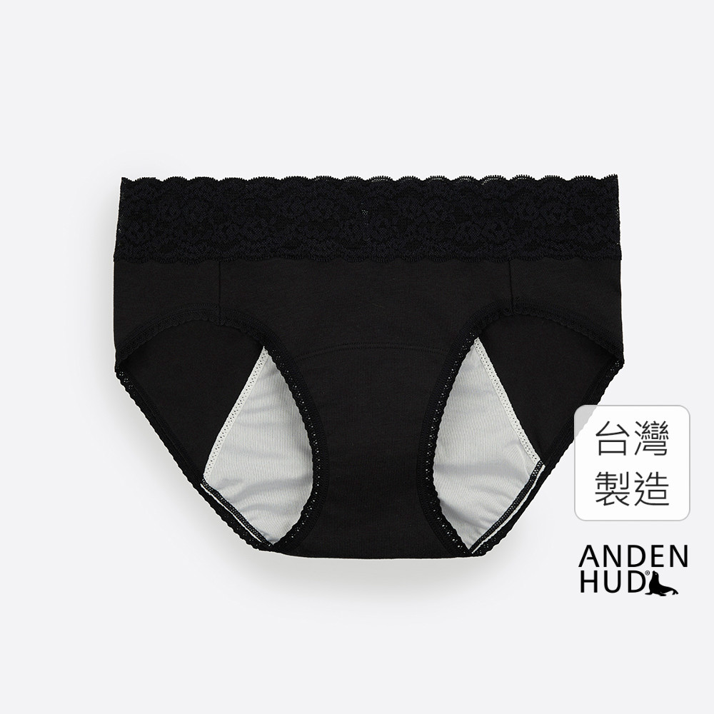 【Anden Hud】經典純色.蕾絲中腰生理褲(黑色) 純棉台灣製M|L|XLPantiesAnden Hud 台灣製內著 官方旗艦店