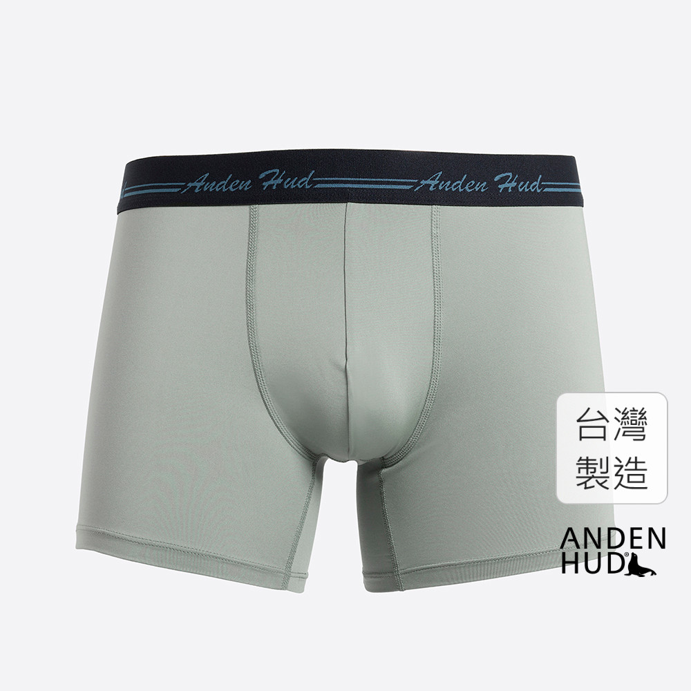 【Anden Hud】男款_吸濕排汗機能系列.長版腰帶平口內褲(礁石灰-手寫logo黑緊帶) 台灣製M|L|XLUnderwearAnden Hud 台灣製內著 官方旗艦店