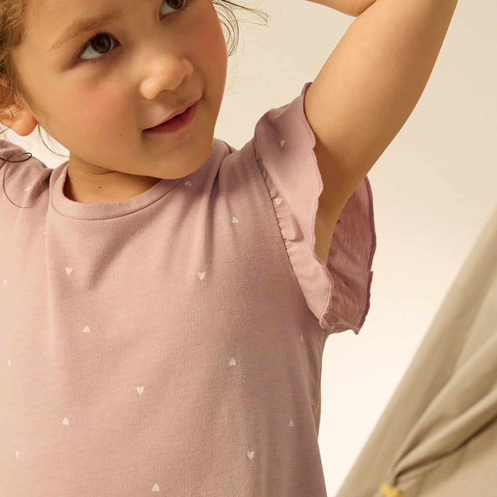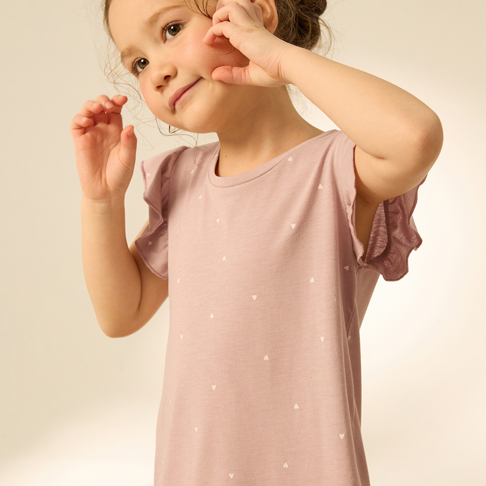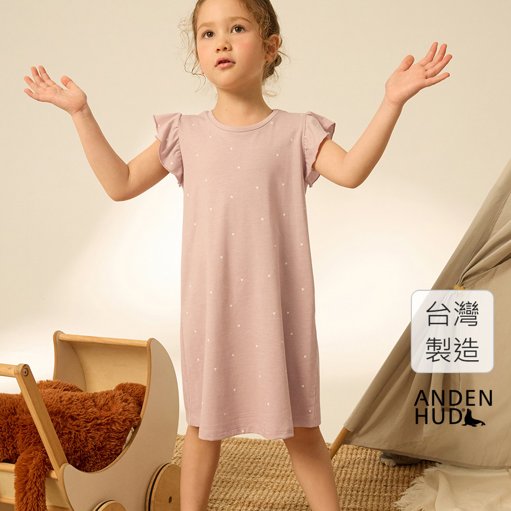 【Anden Hud】兒童連身_暖陽樂園.吸濕排汗 H-Line 荷葉短袖睡衣(罌粟粉-小愛心) 純棉台灣製110|120|130|140|150SleepwearAnden Hud 台灣製內著 官方旗艦店