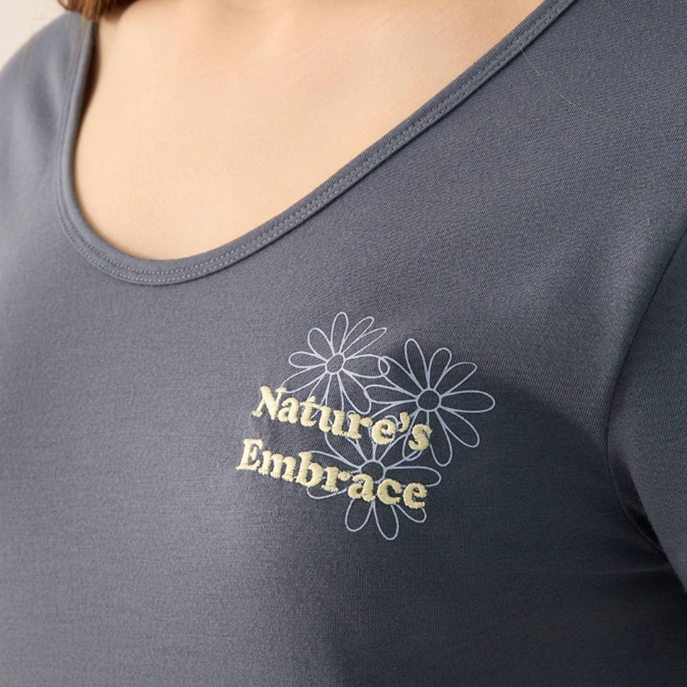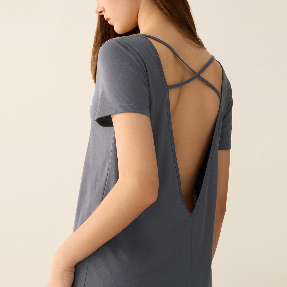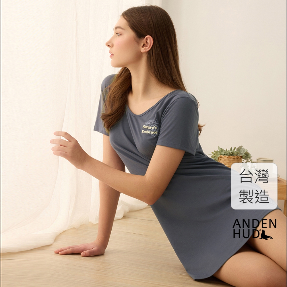 【Anden Hud】連身_夏日暖陽.後深 V 露背短袖睡衣(桔梗藍-刺繡自然的擁抱) 台灣製S|M|L|XLPajamasAnden Hud 台灣製內著 官方旗艦店