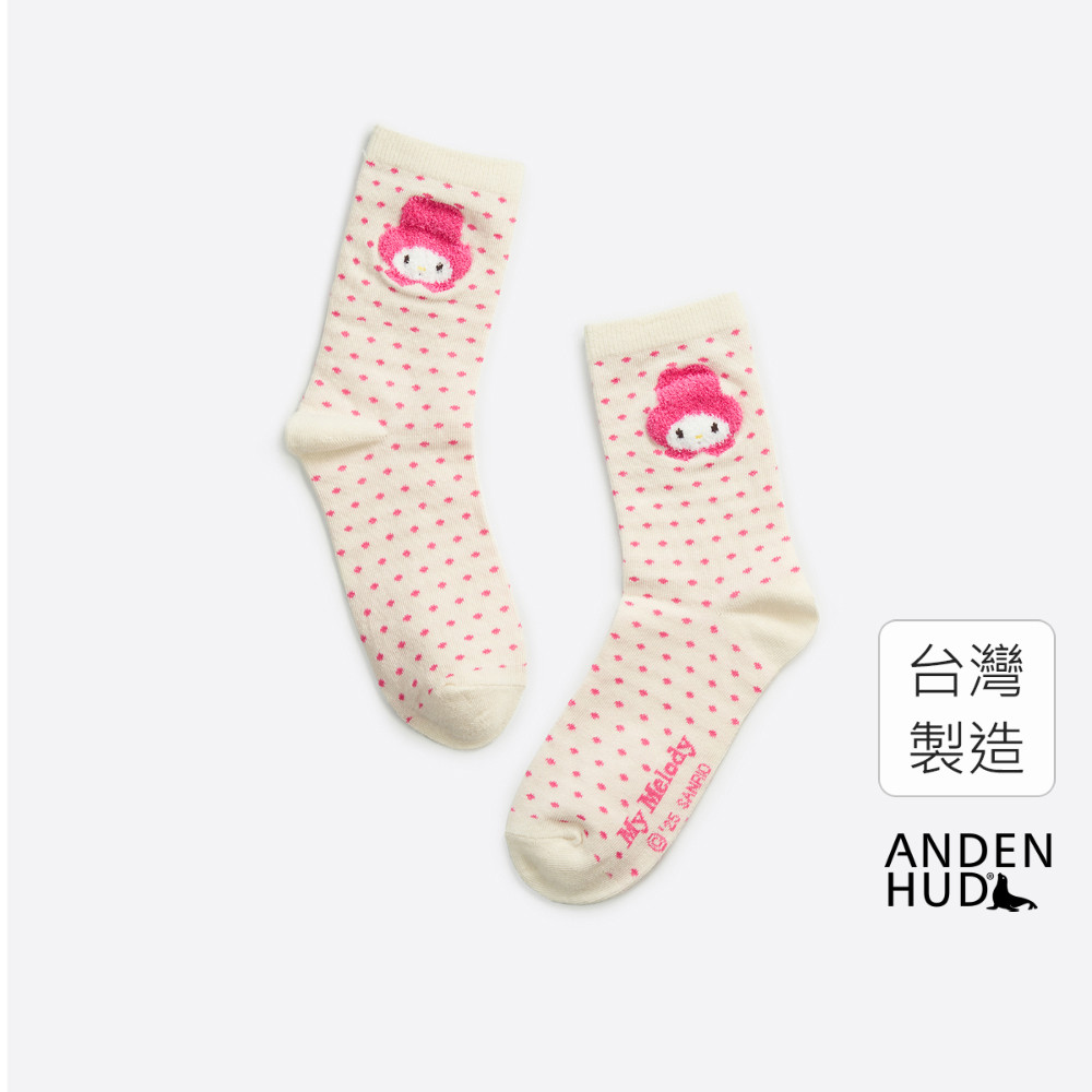 【Anden Hud】美樂蒂系列.緹花中筒襪(米白-點點毛毛美樂蒂) 純棉台灣製 海外禁售