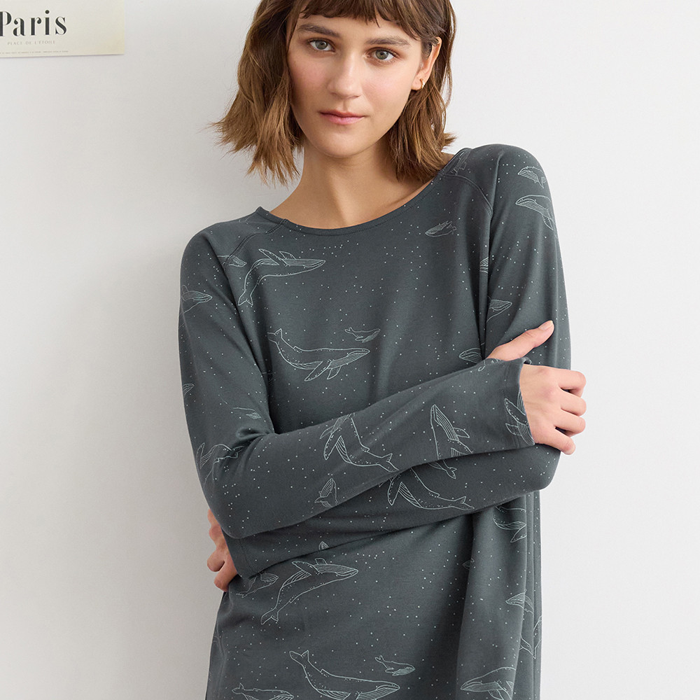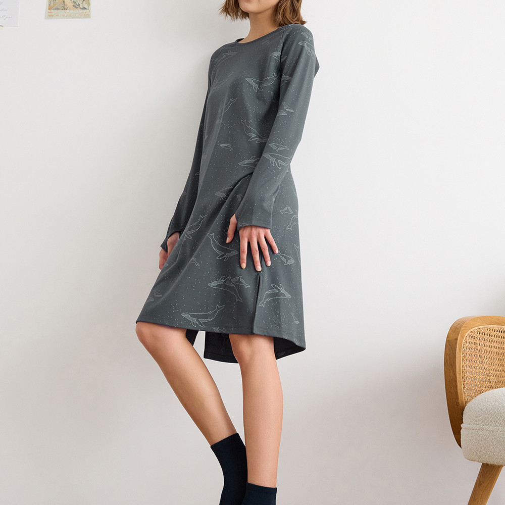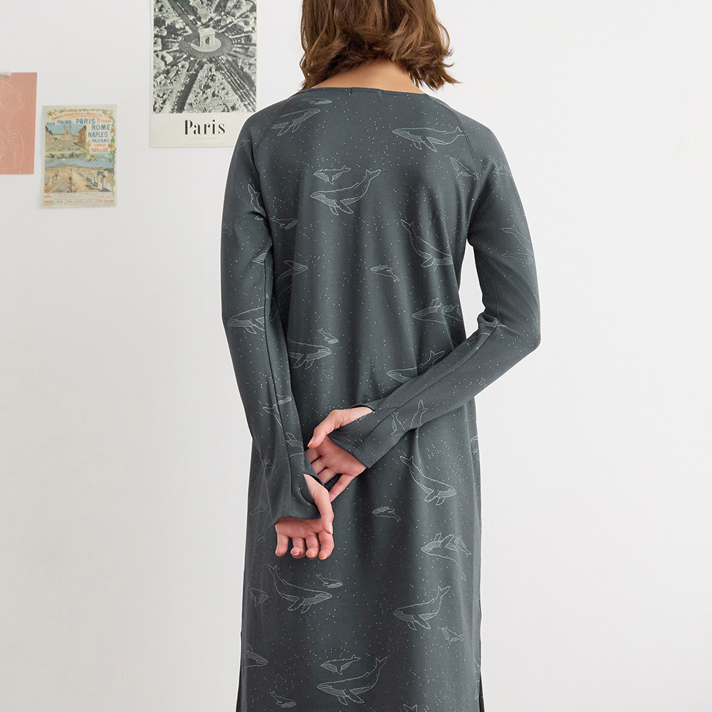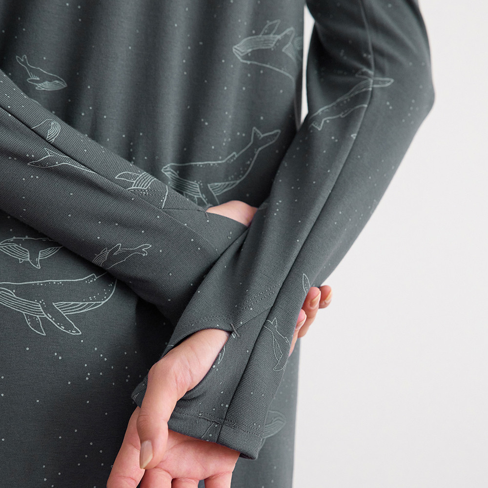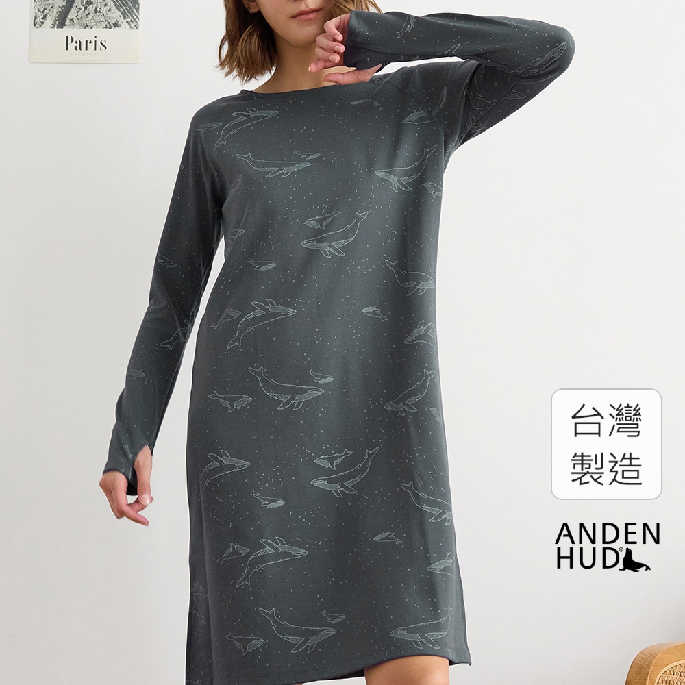 【Anden Hud】連身_Travel memory.拉格蘭長袖造型開叉睡衣(深洋藍-遷徙鯨魚) 台灣製M|L|XL|SPajamasAnden Hud 台灣製內著 官方旗艦店