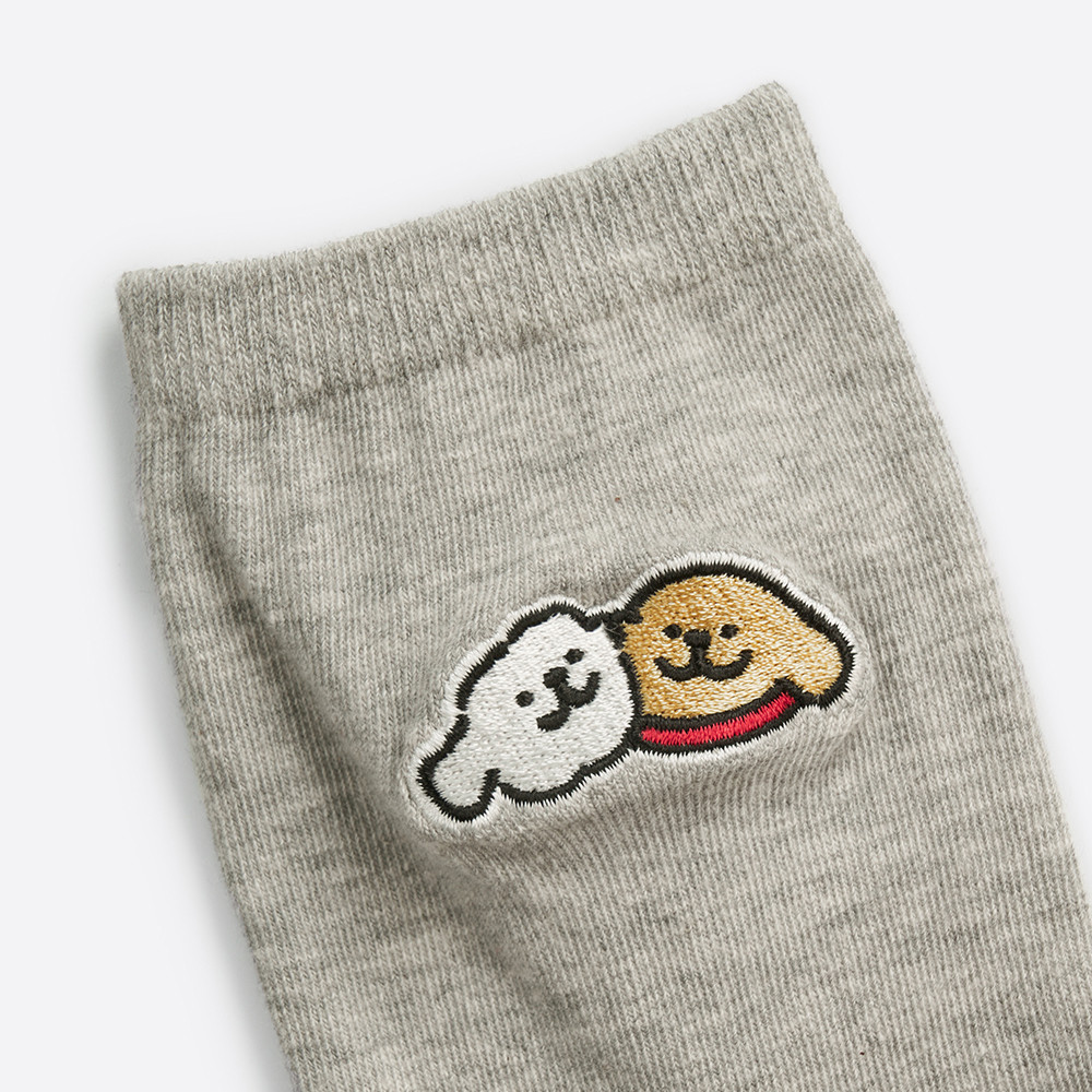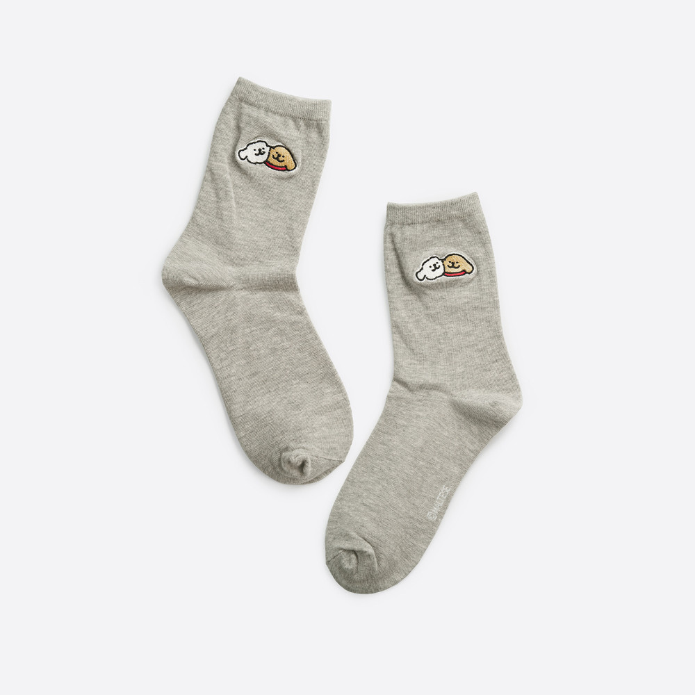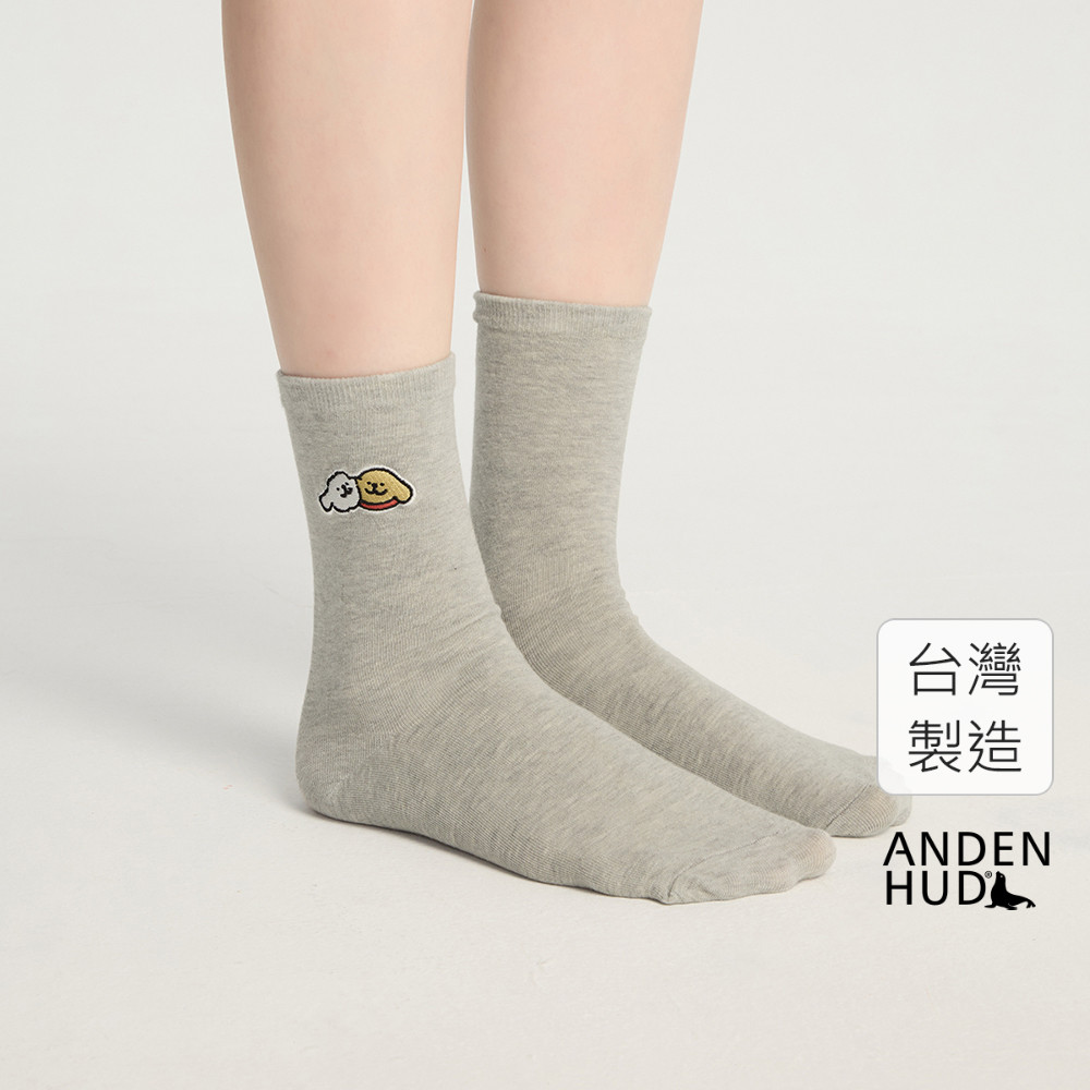 【Anden Hud】線條小狗系列.刺繡中筒襪(淺麻灰-刺繡相親相愛) 台灣製 海外禁售FSocksAnden Hud 台灣製內著 官方旗艦店